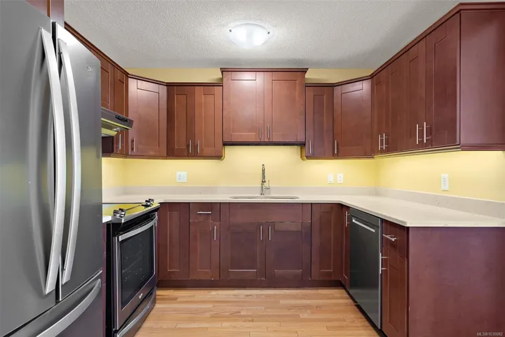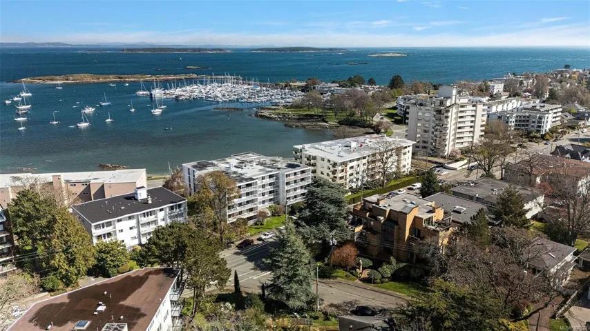 Welcome to Oak Harbor, a well-maintained boutique 8 unit, concrete and steel constructed building in one of the best neighborhoods of Victoria This unit features 1600+ sq. ft. 2 bedroom/2 bathroom three corner unit with lots of light and a great layout . Elegant living room with feature stone fireplace and fabulous dining room are perfect for entertaining. The updated kitchen offers easy access to the 2nd balcony – great for barbecuing. The main bathroom has a convenient walk-in shower. Primary bedroom suite with ensuite and adjoining 3rd deck with water views. Bright 2nd bedroom is perfect for hobbies or guests. In suite laundry, secure underground parking, and separate storage. Small pets are allowed in this building with only 2 suites per floor. This sought after location is only steps to Oak Bay Village, Windsor Park, shopping and restaurants, the marina and world-class golf. All this and some water views too! 40k window special assessment has been paid!