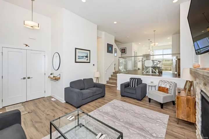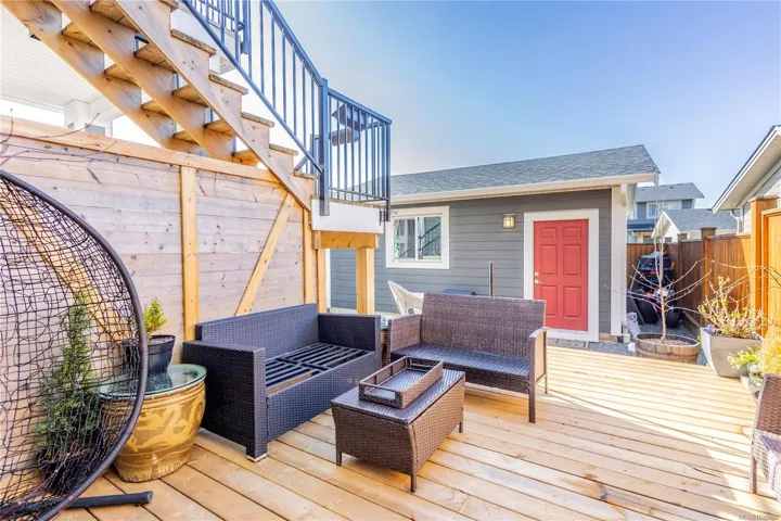 Built in 2020, this 4 bedroom, 4 bathroom home offers modern construction, quality finishes, & a practical layout in the heart of Royal Bay. The main living area features impressive 12-foot ceilings, a gas fireplace, and large windows that bring in plenty of natural light. The kitchen is finished with high-end appliances & contemporary finishes, making it a great space for everyday living or entertaining. Step out onto the south-facing deck to take in mountain views & enjoy sunny afternoons. Upstairs, the spacious primary bedroom includes a walk-in closet, a private ensuite, & beautiful ocean and mountain views. The lower level features a fully self-contained 1-bedroom suite with its own entrance & laundry. At the rear of the property, you’ll find a double car garage accessed from the laneway, providing two secure parking spaces. Proudly offered at $1,149,900, this home represents excellent value in the growing Royal Bay community, just minutes from shops, schools, parks, and the ocean