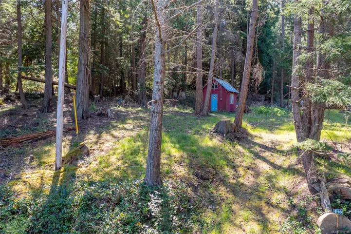 This little lot is located in the desirable Tumbo Channel neighbourhood. There is an existing little bunk house that you could use to shelter in or for storage. It has had electricity hooked up but it will need to be re-connected. There is a well on the property that has not been used for a decade but hopefully it will continue to function once the electricity is reconnected. The bunkie is in good condition but the back detached deck is at life’s end. There is a driveway, albeit overgrown. Still possible to park. There is a beach access across the street and East Point Park & Shell Beach are walking distance away. This property is being offered “As-Is, Where Is”, but with a little TLC, you could be the owner of a precious little gem. You could use this property recreationally or build a year-round home and join our community! Needs Septic system.