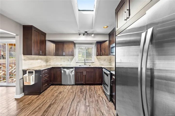 Welcome to this well-located South Nanaimo family home offering space, function, and everyday convenience. With 4 bedrooms and 3 bathrooms, this split-entry layout is ideal for growing families looking for room to live, gather, and grow. The spacious kitchen features a skylight for added natural light, a large fridge and freezer, and plenty of room for daily family use. The dining area opens onto a huge rear deck, perfect for outdoor entertaining and family BBQs. The living room includes a wood-burning fireplace, while the lower level offers added flexibility with a family room, 1 bedroom, 1 bathroom, laundry, and garage access. Set on a 7,715 sq ft lot and located close to VIU, John Barsby Secondary, shopping, parks, trails, and the newly opened Quality Foods, this is a great opportunity for buyers seeking space, convenience, and value.