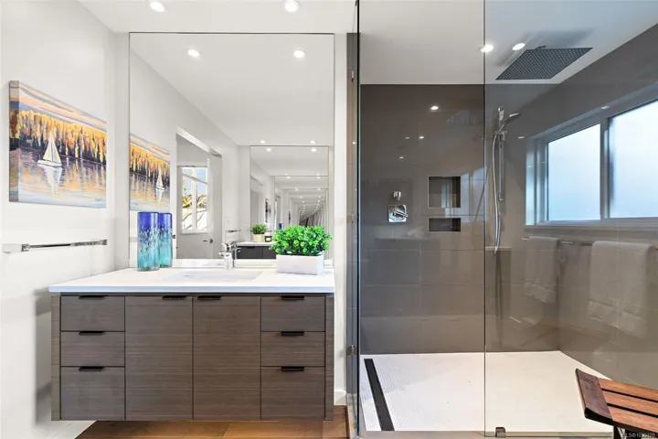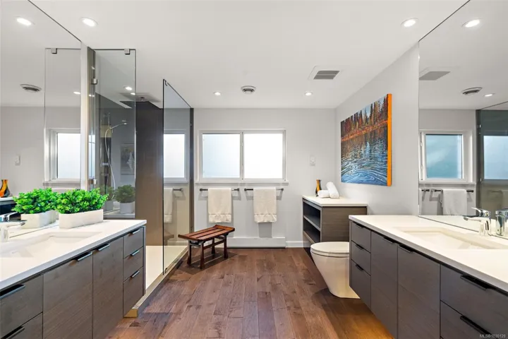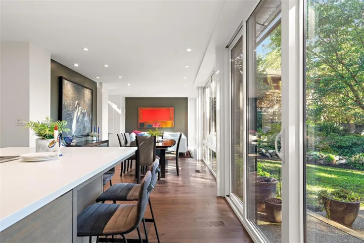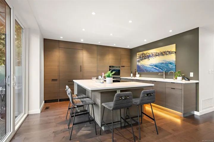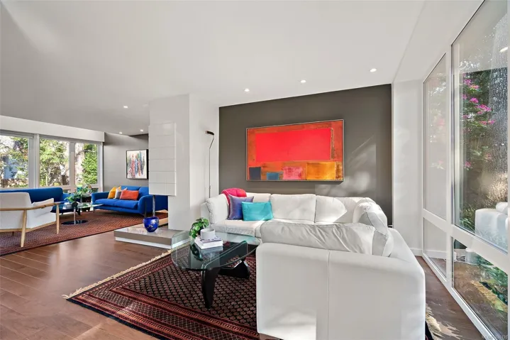 Architecturally reimagined in 2019 with timeless craftsmanship, this family home presents a sophisticated mid-century modern composition defined by clean lines, considered proportions, and an elemental connection to the landscape. Lantern-style windows in the main living room draw in abundant natural light while framing the surrounding greenery, creating a serene interplay between interior and exterior. Refined finishes & elevated functionality are carried throughout, including maple wood floors, a centrepiece wood-burning fireplace, and a chef’s kitchen appointed with Sub-Zero refrigerator, Fisher & Paykel appliances, a steam oven, and two warming drawers. A cantilevered carport with transparent architectural detail reinforces the home’s design integrity, while mounted patio heaters extend the living experience outdoors. Offering 5 bedrooms & 5 bathrooms including a self-contained studio suite, this is a rare offering of enduring style, architectural clarity, and understated luxury.
