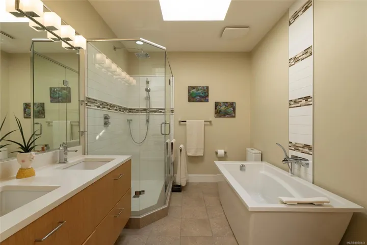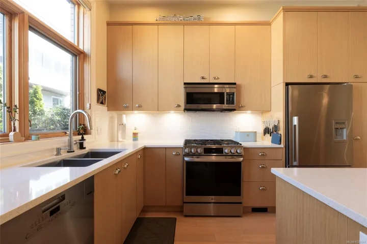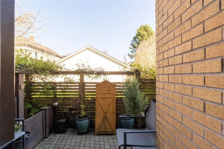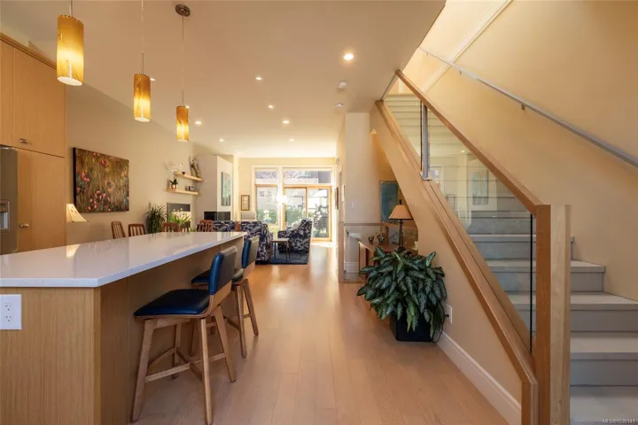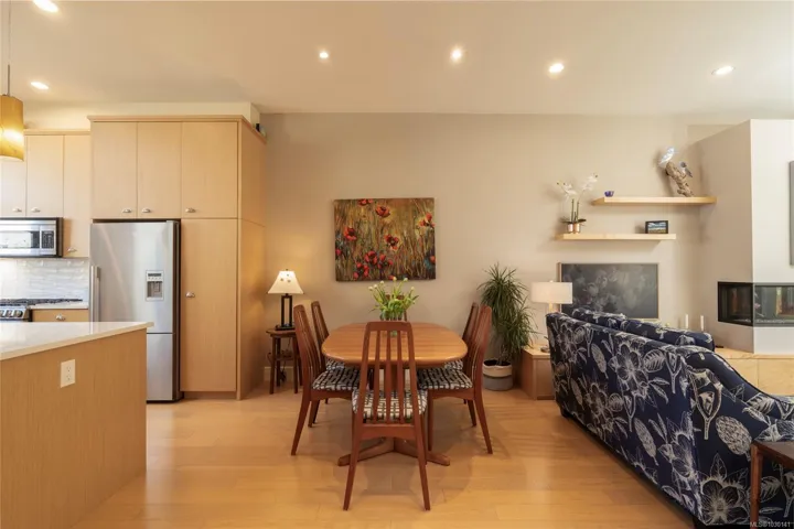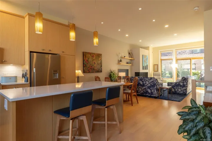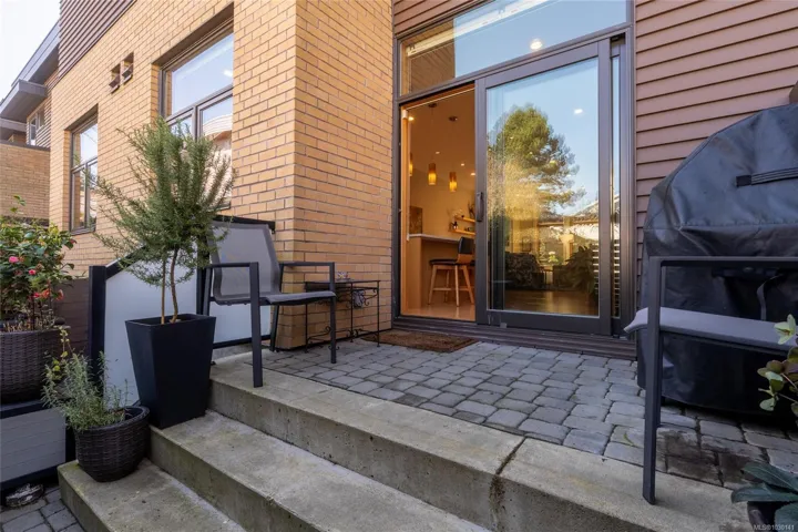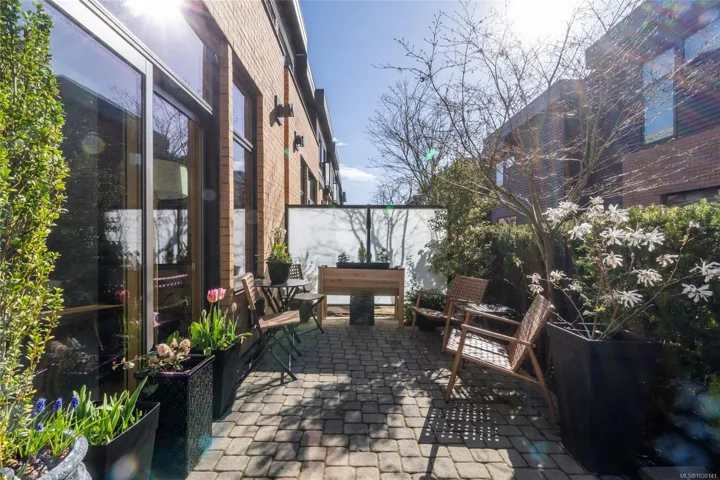 An exceptional chance to own a residence in Terra Verde, a boutique collection of just sixteen upscale townhomes designed by Abstract Developments. Tucked along a quiet tree-lined street near Cook Street Village, this setting blends easy walkable access to shops, dining, and services with a calm, private atmosphere and strong neighborhood feel. Inside, the home offers 1607 square feet of modern living across three levels, featuring three bedrooms and three bathrooms, including a bright ensuite with skylight and a freestanding soaking tub. Highlights include 10-foot ceilings, oversized windows on the open-concept main floor, a sleek updated horizontal gas fireplace with built-in surround, hardwood and polished concrete flooring with radiant in-floor heating, and a private two-car garage in the secure underground parkade. Enjoy outdoor space on a sun-drenched south-facing terrace or the private rear patio off the kitchen; ideal for entertaining, barbecues or a morning coffee.