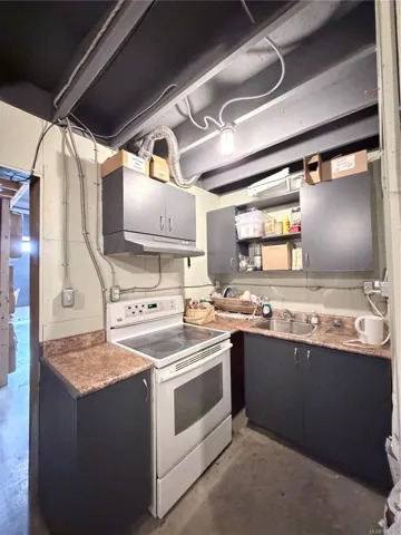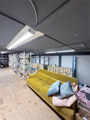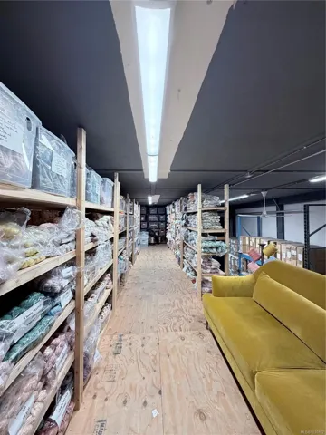 Key features include a generous 14′ loading door, and a functional office area on the mezzanine. Additional benefits include 125 amp 3-phase power, a 2-piece bathroom with full-size shower, a full kitchen, and metal racking that can be included at an additional cost or removed to customize the space.