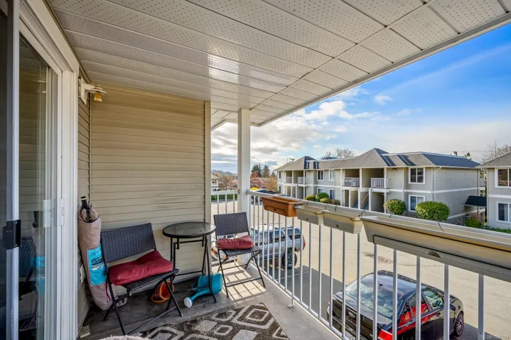 Top-floor corner unit in Courtenay, offering a smart 2 bed, 1 bath layout with 934 sq ft of finished space. This bright home features in-suite laundry and excellent separation between bedrooms. Enjoy a north-facing balcony off the primary—perfect for morning coffee—and a sunny south-facing balcony off the dining area with mountain views. A 28 unit building (1994), located in Poplar Place (130 Back Rd), in the heart of the Comox Valley, close to North Island College, the hospital, Aquatic Centre, shopping, transit, airport, and CFB Comox. Pet-friendly (1 pet under 20 lbs or 2 caged birds). Non-smoking property. Propane BBQs permitted with care. Currently tenant-occupied (month-to-month) at $2,100 with reliable occupants—ideal for investors or future homeowners.