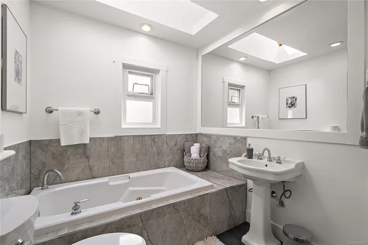 Beautifully updated 1944 home in one of Victoria’s most desirable neighbourhoods, Oaklands. Situated on a quiet, tree-lined street just minutes to downtown and major bus routes, with a 5-minute drive to Royal Jubilee Hospital, Fernwood Village, Hillside Shopping Centre, and Camosun. The main level offers hardwood floors, coved ceilings, a bright living area, spacious updated kitchen, family room, two large bedrooms (one with ensuite) & a spa-inspired bathroom. Upstairs features two additional bedrooms, while the lower level provides 1,000+ sq ft ready for your ideas. Enjoy a sun-filled, fully fenced backyard with a large flat lawn, expansive deck, pergola, and hot tub—perfect for relaxing or entertaining. Excellent walkability to parks, schools, shops, and transit.