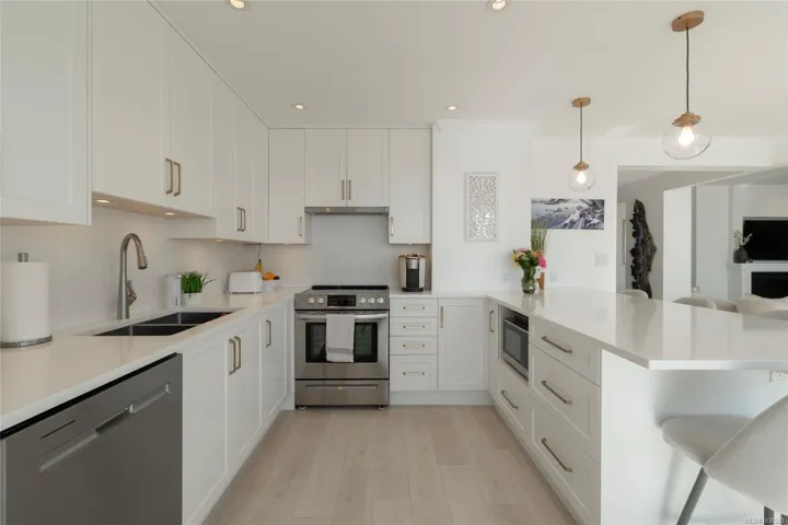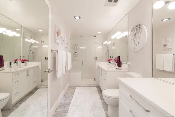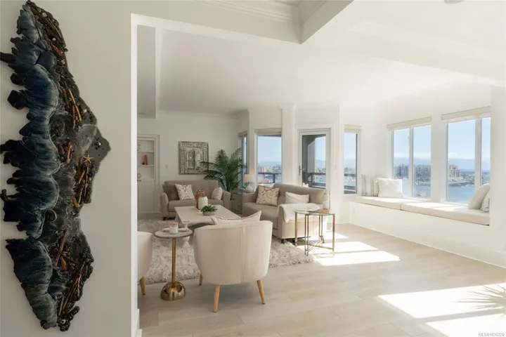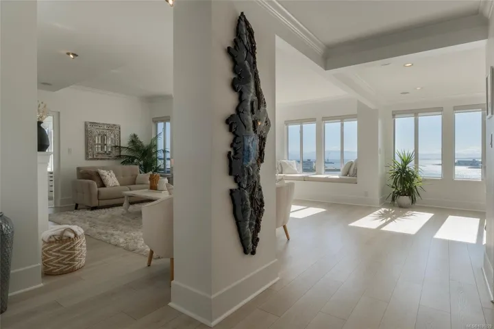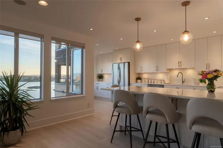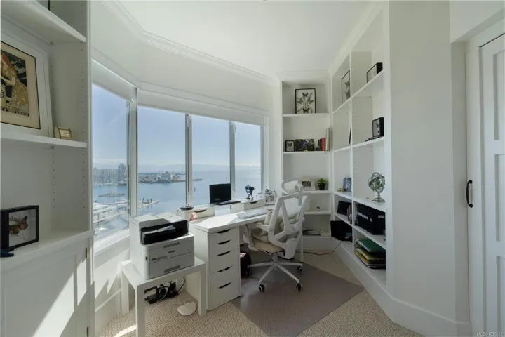 There’s simply nothing like unit 740 at Ocean Park Tower—a 2,700 sq ft sub-penthouse that lives like a luxury home in the sky! Start your mornings with coffee at the kitchen bar as the sun rises over the Olympic Mountains, then stroll the Songhees Walkway into downtown Victoria—just 6 minutes away, yet worlds apart. Inside, exquisite taste is evident in every detail: from coffered ceilings over a formal dining room, to the built-in speaker system, and a chef’s kitchen anchored by an 8’ peninsula bar. The walk-in pantry is a dream—complete with wine fridge, secondary fridge, and built-in desk for menu and event planning. Evenings are for entertaining or unwinding fireside before retreating to your private sanctuary—3 bedrooms with ensuites, including a stunning primary with its own balcony. And tucked behind a custom bookshelf? A hidden 19’ private office/library. 2 parking stalls (one EV-ready), 2 storage lockers, and a fully updated building are the cherry on top of this rare offering