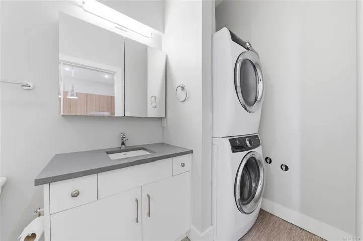A rare opportunity to seamlessly blend home and business in one versatile property. Ideally located with excellent exposure just minutes from Hwy 1 and downtown Langford, this BT1-zoned space is designed for flexibility. The ground level offers a functional commercial shop complete with an entry foyer, large overhead door, wheelchair-accessible 2-piece bathroom, gas furnace, and capacity for 3-phase power equipment. Upstairs, a bright and modern 2-bedroom suite features an open-concept layout, stylish kitchen with breakfast bar, in-suite laundry, and impressive ceiling height. A heat pump provides efficient heating and cooling year-round. Whether you’re an owner-operator looking for convenience or an investor exploring dual-income potential, this is a smart and adaptable opportunity.