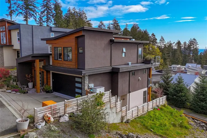 Perched in sought-after Royal Bay, this 2019-built home offers unobstructed ocean views from all three levels and over 3,900+ sq ft of thoughtfully designed living space. The main home features a bright, open-concept layout with expansive windows, a redesigned living room fireplace, and seamless access to an extended wrap-around balcony—perfect for taking in the views. A self-contained 1-bedroom suite adds flexibility for family or rental income. Hobby Rm down could be another bedroom, making it a 5 Br. home. Extensive upgrades include 9 new windows (3 opening for airflow), motorized blinds throughout, Toto toilets in 4 bathrooms, a new heat pump in the suite, and a top-of-the-line sewage treatment pump. Outside, enjoy lovely new landscaping and fencing. Located in a vibrant coastal community with beaches, parks, trails, and growing amenities. This is West Coast living at its finest.