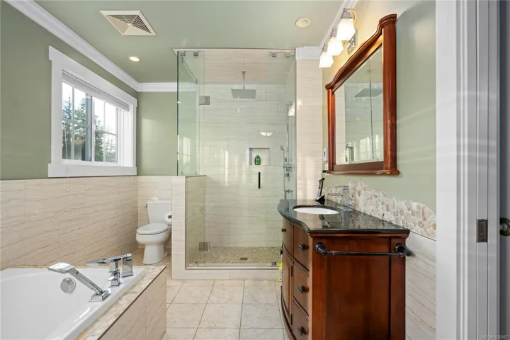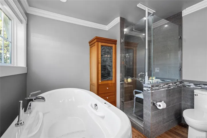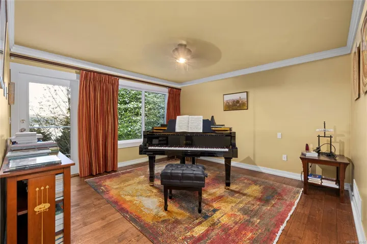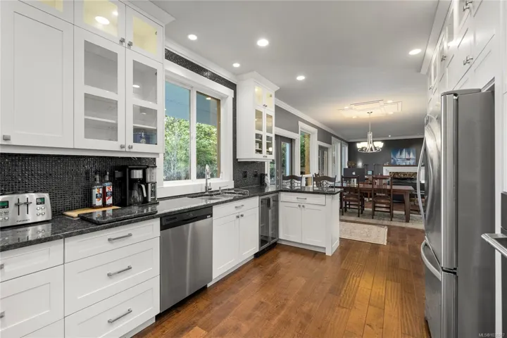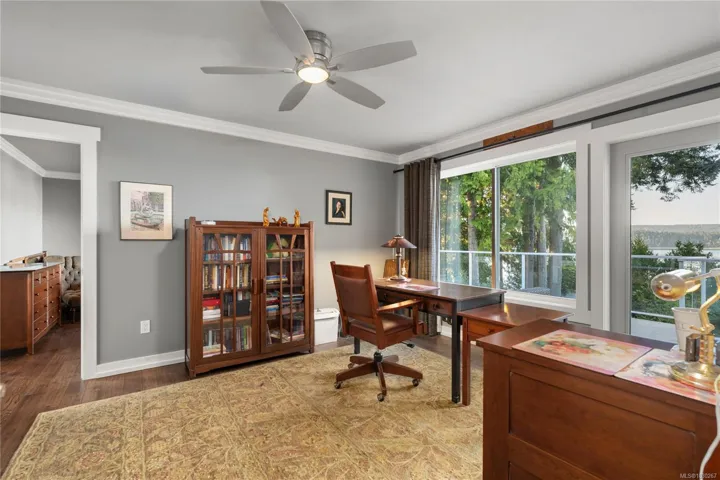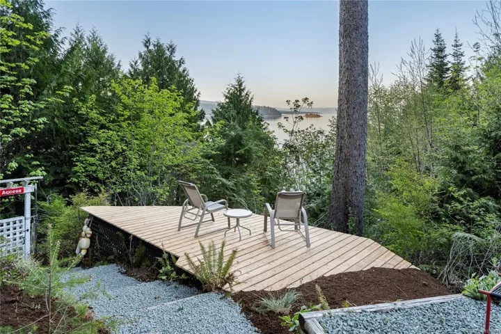 Set on a private 0.59-acre high-bank bluff in Bowser, this custom-built Pickard Construction home captures breathtaking Salish Sea views to Denman Island and Chrome Island Lighthouse. Built in 2010, this elegant West Coast residence offers seamless indoor-outdoor living with principal rooms and both bedroom suites opening to a full-length ocean view deck. Features include hand-scraped oak flooring, 9-foot ceilings, custom crown mouldings, propane fireplace, heat pump, Starline vinyl windows, and a beautifully appointed kitchen with alder cabinetry, granite countertops, JennAir stove, wine fridge, and abundant storage. Both bedrooms feature walk-in closets and luxurious ensuites with heated floors, including a spa-inspired primary ensuite with freestanding Amma tub. Oversized garage with workshop space, detached powered workshop, fenced yard, beach access, and Deep Bay Marina just minutes away complete this exceptional Vancouver Island retreat. See Features sheet for details.