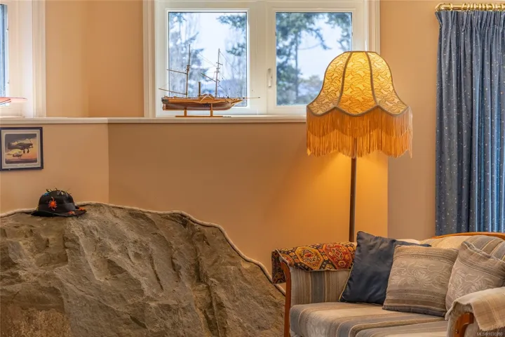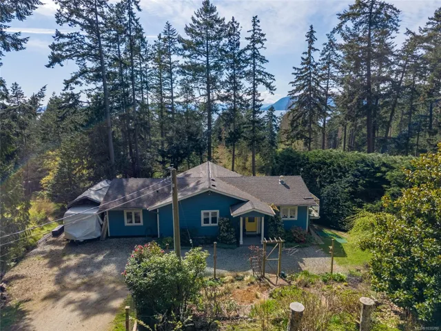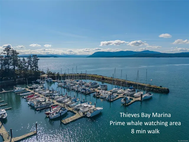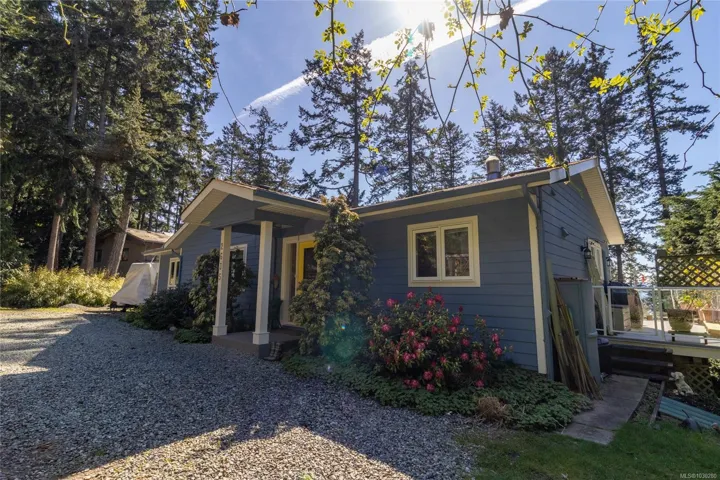 South-facing West Coast–style home on a private 0.55-acre lot, a short walk from Thieves Bay Marina and Park. Built in 2004, this custom Viceroy kit home offers quality construction, vaulted wood ceilings, large windows, and a durable 40-year fiberglass shingle roof. The main level provides three bedrooms including a primary bedroom with ensuite and private balcony. Abundant natural light fills the interior, with small ocean glimpses from several rooms. A daylight basement with exterior access includes a large family room and additional unfinished space suitable for future development, workshop, studio, or suite. The owners have continuously updated the home over the years with exterior painting, appliances, flooring & countertops and a new heatpump last year. Serviced by Magic Lake water system and on septic. Quiet setting close to moorage, parks, trails, whale watching, and local recreational amenities. Current bylaws permit an accessory building. Information package available.