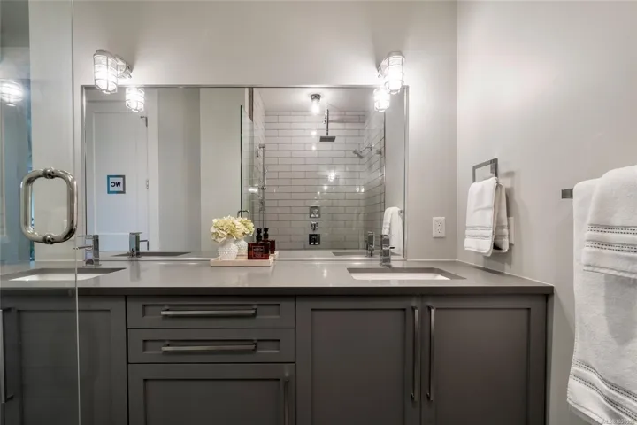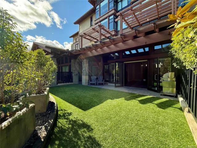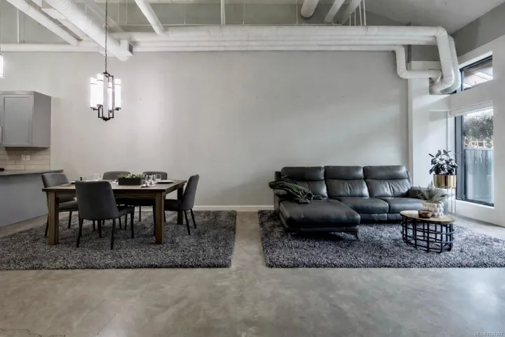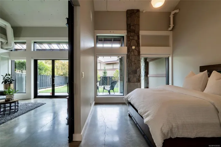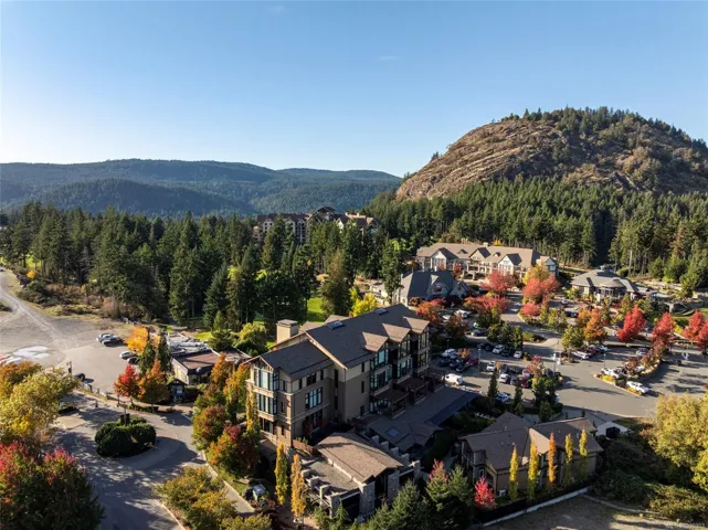 THE LOFTS AT BEAR MOUNTAIN! Prestigious residences in a steel and concrete building originally quality-built for commercial use. This industrial-chic, 1 bed + den home offers 1,000+ sqft of contemporary living with soaring 14-foot ceilings, floor to ceiling windows, polished concrete floors and a bright, open layout. A sleek kitchen complete with quartz countertops, gas range, high-end stainless appliances, oversized double sink, stylish shaker cabinets and high top bar. Revel in a spa-inspired bathroom with heated floors, dual sinks, separate water closet and spacious walk-in shower. Double doors lead to a massive, private backyard perfect for indoor/outdoor entertaining. Additional highlights include a heat pump, secure underground parking, storage locker and pet-friendly with no size limit. Steps from world-class golfing, a fitness centre with heated outdoor pool, Jack’s Place and the Westin Resort. Discover an unbeatable lifestyle in a one-of-a-kind building; a truly rare offering.