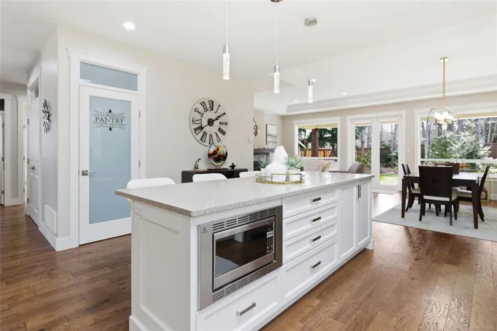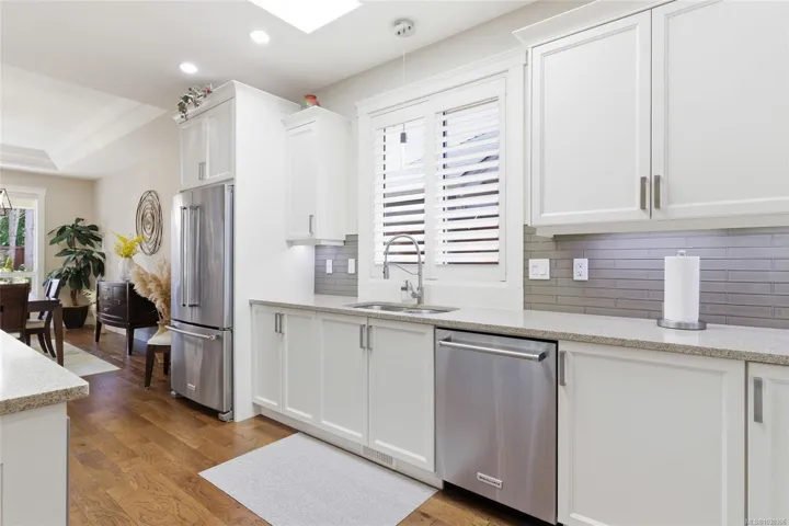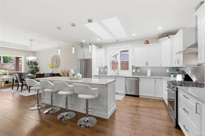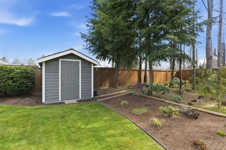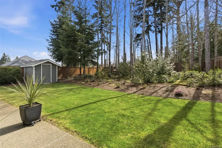 Spacious and sun-filled 3-bed 2-bath Executive John Carey Rancher. Situated on a beautifully landscaped .24 acre lot just a short walk to Parksville’s town centre & beach. Open concept kitchen, living/dining area featuring eng. hardwood floors, soaring 10′ ceilings, big windows with sunny southern exposure, and a cozy gas fireplace. Contemporary kitchen with quartz counters, quality cabinetry, extended island with breakfast bar, separate pantry closet, and S/S appliances including a new gas stove. Euro-style patio doors open to a large covered patio with skylights and picturesque view overlooking the fenced, south-facing yard backing onto protected parkland, complete with storage shed. Generous primary suite with WI closet and renovated 5pc ensuite, den that doubles as a 3rd bed & skylighted 4pc main bath Fresh paint throughout, EV charger & RV parking potential. A bright, immaculate move-in ready home offering low maintenance living.