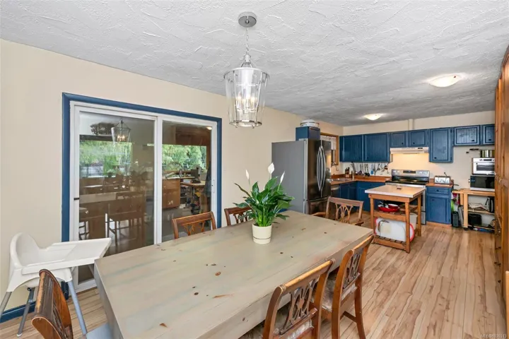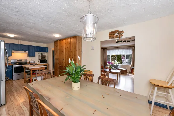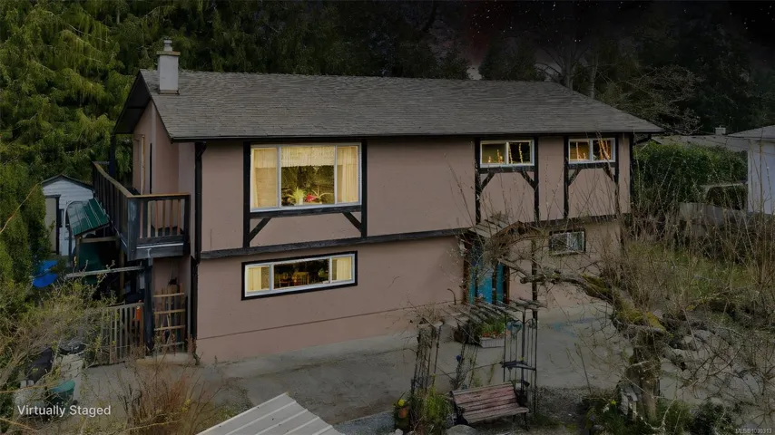 Great value & flexibility in this 5-bedroom home perfect for multi-generational living & a good location for commuters! Located in a quiet family friendly neighborhood close to endless recreation & the heart of Shawnigan Lake village, the main level has a large kitchen with newer appliances & lots of storage, dining room which accesses a large enclosed deck (hobby room?) & an open deck, large living room, 3 bedrooms including the generous primary with walk-in closet & a full bathroom with jetted tub. Downstairs is an unauthorized in-law suite with newer stove, living/dining area with a wood stove for chilly nights, full bathroom cozy, workshop & lots of storage. Outside are several areas in which to enjoy your surroundings including a private back patio, front pergola surrounded by mature gardens, & a garden area with boxes. There are garden sheds, wood storage & several varieties of apple, plum, Asian pear, along with rhubarb, grapes, Saskatoon berry, blueberries & more!