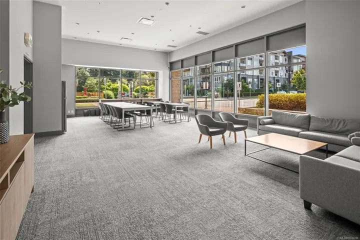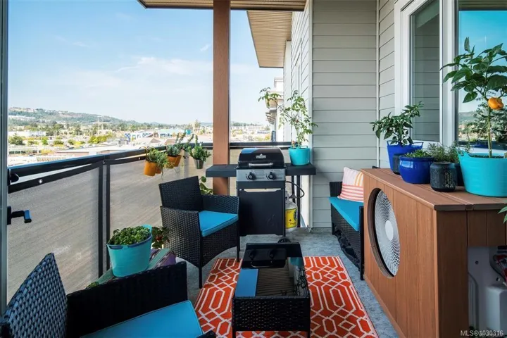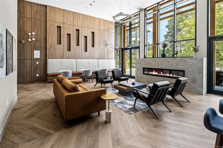 Luxury living inspired by the Pacific Northwest – Welcome to Reunion at Belmont! Experience elevated living in this exquisite top-floor one-bedroom + DEN residence. Soaring 9-ft ceilings, a heat pump, and wide plank flooring set a sophisticated tone. The chef-inspired kitchen boasts quartz countertops, custom cabinetry, generous storage, and premium S/S appliances—there is also extended appliance warranty for added peace of mind. Indulge in the spa-like bath with floor-to-ceiling tile, a deep soaker tub, and designer fixtures. Take in sweeping mountain and treetop views from your sunlit, BBQ-ready patio—perfect for elegant evenings. This pet-friendly building offers secure parking, bike storage, a locker, & resort-style amenities: fitness center, pet club, private terrace, lounge, & access to the Belmont Club. Just steps to the Galloping Goose trail, fine dining, & transit. Don’t miss your chance to live in one of the Westshore’s most desirable communities.
