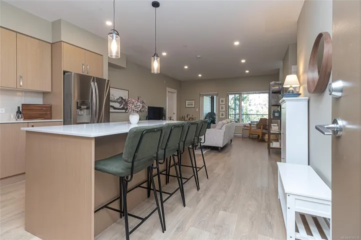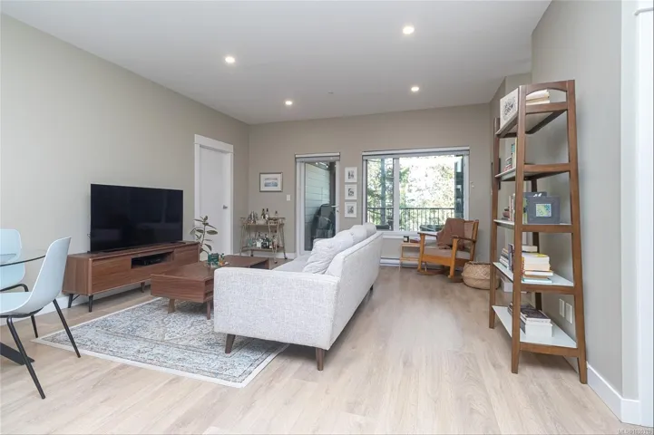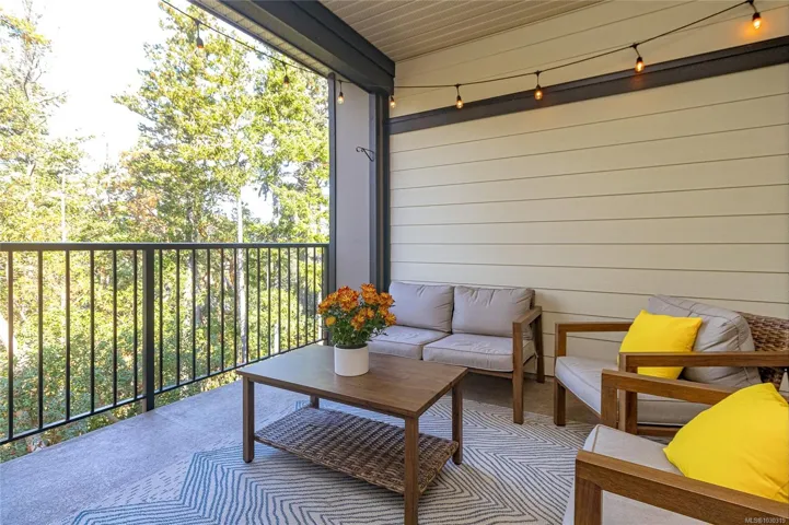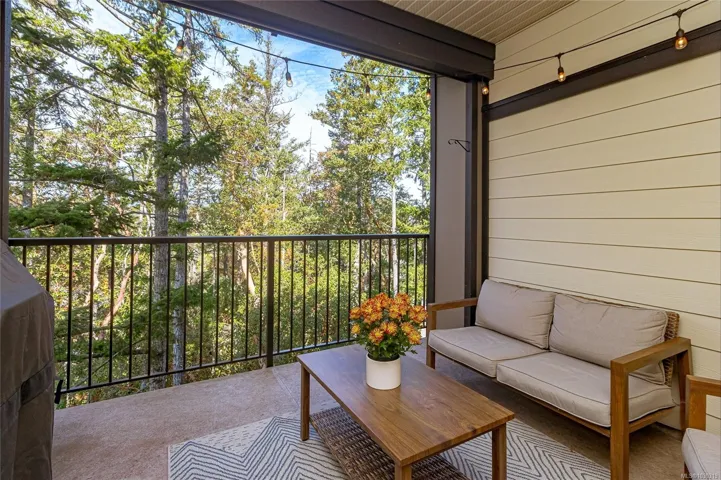 Bright and Spacious 2 Bed 2 Bath plus separate office or den unit with hill top views in convenient View Royal. Ideal end unit layout with oversized windows that provide fantastic views and allow light to flood the space throughout the day. Large private covered balcony with treetop views ideal for outdoor gatherings and BBQs. Open-concept living dining room, fantastic gourmet kitchen boasting quartz countertops, oversized island, under cabinet lighting, pot lights and upgraded dishwasher and refrigerator. Large primary bedroom includes walk in closet and luxurious ensuite. Large second bedroom and separate office or den make this spacious condo unique. New ceiling pot lights, in-unit laundry. Located minutes from downtown transit bus stop, grocery, beaches, Galloping Goose, Juan de Fuca rec sports centre and library. Downtown just a 15-minute drive away. Secure underground parking stall and storage locker. Bike storage, pet-friendly and rentals allowed. BONUS Guest suite for visitors