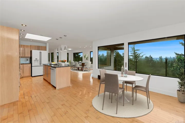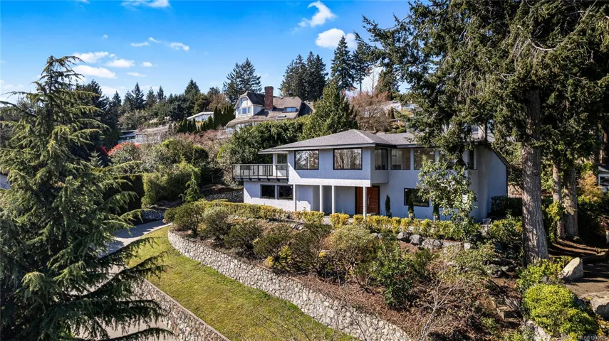 Freshly renovated including NEW interior and exterior handrails and glass railings, soffits, hot water tank, refinished garage, and more. This bright, contemporary 3-level West Coast-design water-view residence includes heat pump with 3 air handlers, plus a primary room with a w Tuscan-inspired 3-pc en suite & jetted tub. Two additional bedrms, laundry and 3-pc ba with storm shower on main level. Upstairs, the spacious, open-concept skylit living area with hard wood floors boasts a gourmet kitchen with as-new-condition Cafe appliances and quartz countertops, plus dining, living room, family room and generous sun deck. Ground level features a 2-car garage, powder room, and flex room to support a family room, gym, music room, home office or other useful purposes. Short walking distance to Mattick’s Farm Market, Cordova Bay Golf Course, parks and highly rated schools, this .35-acre, low-maintenance property includes terraced gardens, dry-stack rock walls, and a built in irrigation system.