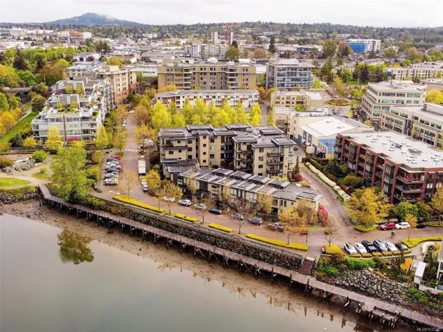 A rare offering defined by scale and setting. This expansive 2 bed, 2 bath residence at Edgewater features oversized principal rooms, a bright living/dining space with gas fireplace, and ideal bedroom separation. Large primary with ensuite. Covered terrace with water glimpses. Set along the Gorge with beach access for kayak launches, otters and cormorants at your doorstep, and a new swimming dock at Banfield Park. Ideally located between Uptown and downtown, bike to either in minutes. Steps to cafes, fitness and the Galloping Goose—. EV-ready building in a true urban waterfront oasis.