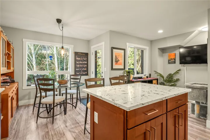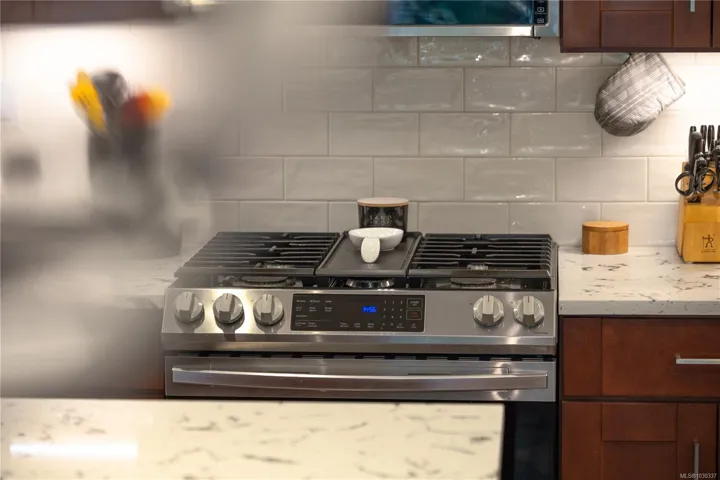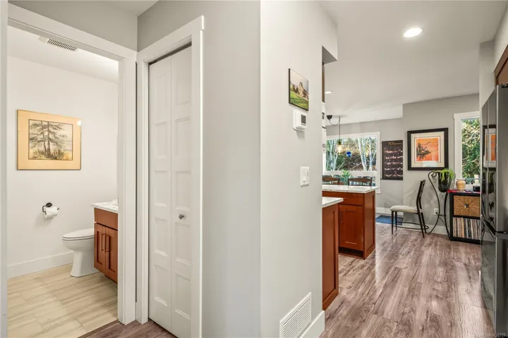 Like-new & built in 2022 with NO GST, this modern 2-bed townhome offers the perfect balance of modern comfort and relaxed living in the heart of Chemainus. Ideally situated near golf, scenic walking trails, shopping, and local amenities, this move-in-ready home has been thoughtfully designed with quality finishes throughout. The kitchen features quartz countertops, ample cabinetry, gas range, a functional open-concept layout that flows seamlessly into the living space, complete with a cozy electric fireplace. Step outside to your private deck overlooking peaceful green space—perfect for morning coffee. The spacious primary is a true retreat, with an oversized walk in shower & heated floors. Enjoy gas forced-air heating, on-demand hot water, gas dryer, & upgraded window coverings. The rare 36-ft garage accommodates 2 vehicles, a workshop, home gym, or office, while the over-height crawlspace provides exceptional storage. Family, pet, and rental friendly—an outstanding opportunity!