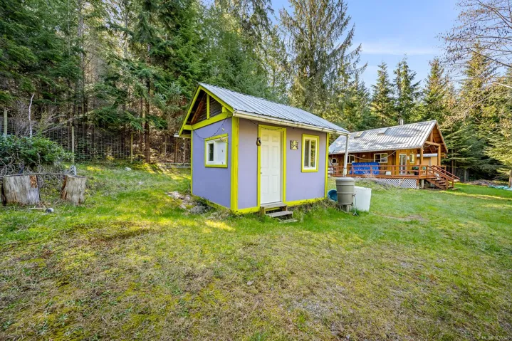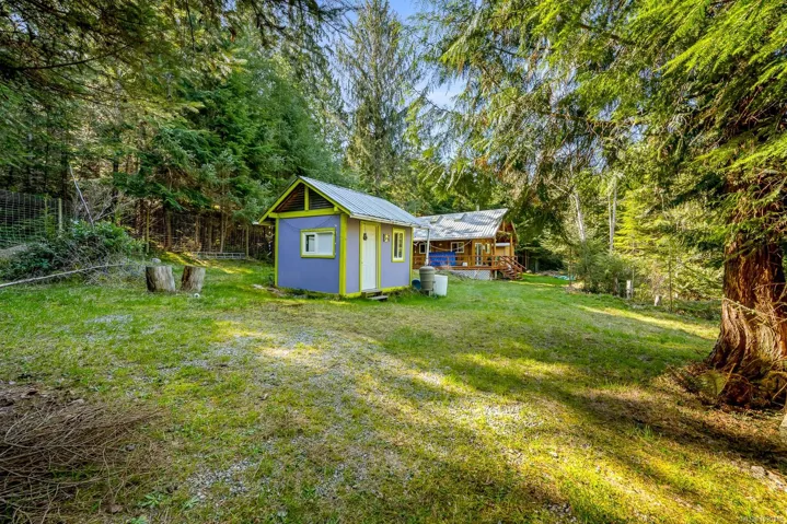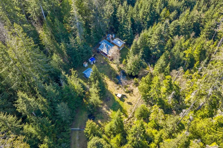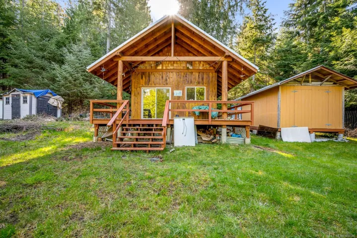 Set on 10 private acres, this special Cortes Island property offers peaceful off-grid living with future potential. Built in 2013, the beautifully crafted cabin features exposed wood beams, high ceilings, and a cozy wood-burning fireplace. Just off the back of the cabin is a separate cooking space and a bathroom roughed in. The property also includes a smaller cabin, sheds, parking garage, and outhouse. A standout feature here is the potential to build an additional home, making this an excellent option for those dreaming of a family compound, expanded retreat, or future improvement. With solar panels, battery bank, rain collection water, and a septic tank on site, this is a rare chance to enjoy the magic of Cortes Island and create something truly special.