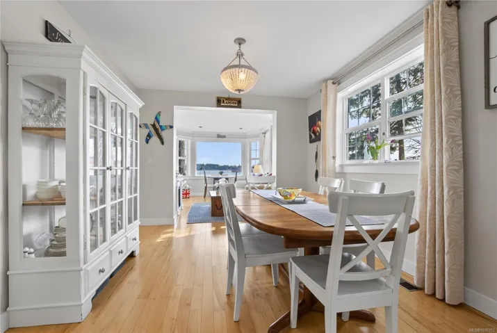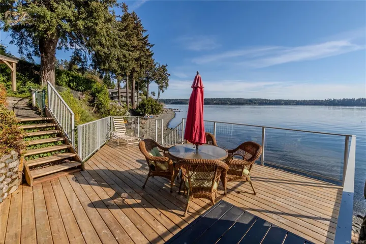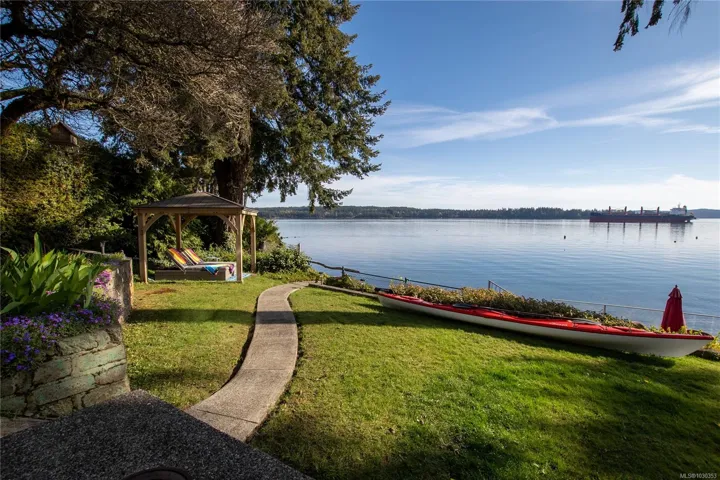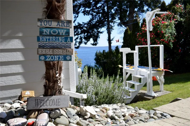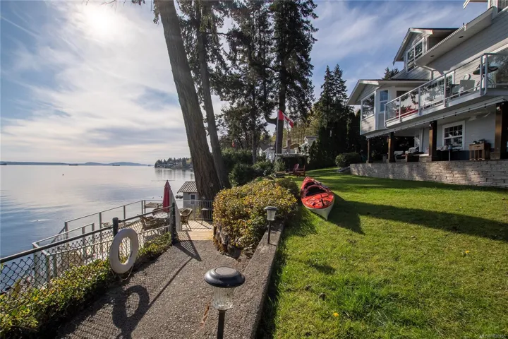 Nestled along the sun-kissed shores of Ladysmith, BC, this oceanfront estate offers a blend of natural beauty & refined living. Set on a private 0.62-acre lot with numerous gardens, a greenhouse, & even a palm tree, the property invites you to slow down & savour the coastal lifestyle. Walk directly to the water from your own patio seating area, or unwind on one of seven distinct outdoor spaces-from the BBQ deck & firepit patio to the serene Orca deck set at the water’s edge. Inside, maple hardwood floors, crown moulding, & a fir staircase speak to timeless craftsmanship. The chef’s kitchen features quartz counters, a propane range, & an island for four, flowing effortlessly into dining & breakfast rooms with sweeping ocean views. The primary suite offers a walk-in closet w/built-in cabinetry & a spa-inspired bath w/pedestal tub, dual sinks, & bidet. A fully equipped detached guest cottage w/fireplace, sauna & a workshop w/woodstove & skylights complete this one-of-a-kind offering.