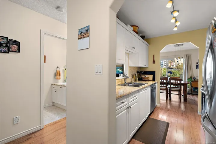 Welcome to this beautifully updated two-level townhome featuring a highly desirable floor plan. Here you’ll find a quiet, park-like oasis in the heart of Langford. Just a 5-min walk to Langford Station, Westshore Towne Centre, Cineplex, Walmart, dining and more, this location offers unbeatable convenience. Families will love being a 10-min walk to highly regarded David Cameron Elementary. Inside, enjoy modern updates to flooring, paint, kitchen, appliances, main floor bath & functional built-in den cabinetry. The well-established private garden beds provide year-round blooms, while your private patio backs onto a large beautifully landscaped greenspace. The spacious layout features 3 large beds up, family bath, full ensuite & laundry. The well-run strata has already completed major updates including roof & fencing, plus allows pets & BBQs. Complete w/ a garage & an additional parking spot, this home is perfect for families or those looking to downsize. This townhome is a rare find!