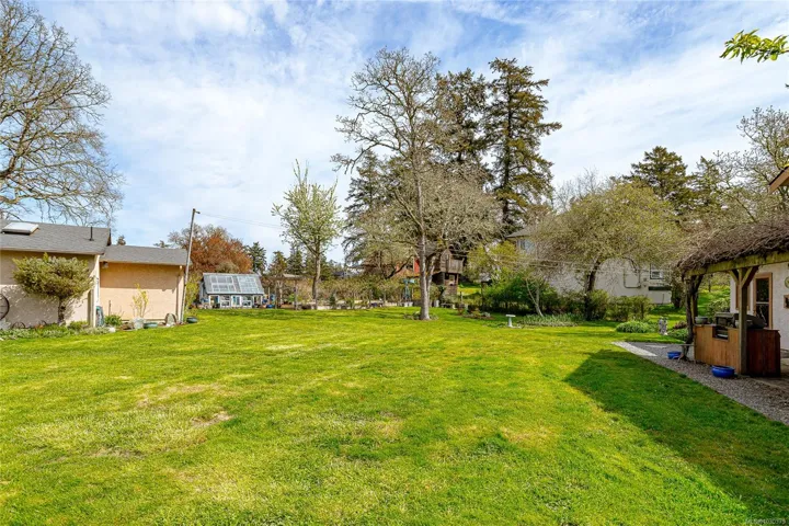 OPEN HOUSE SUNDAY, APRIL 19TH, 3:30PM-4:30PM. Beautiful 0.6 acres rural property in the sought after Burnside area of Saanich West. Incredible pastoral setting with lovely Olympic Mountain views! Spacious 3 level Lindal style family home with vaulted ceilings & wood beams. Bright Open concept. Gourmet kitchen with eating island & coffee nook. Office with gas F/p. 3 bdrms up, primary has deck & large walk-in closet. Lowest level has 1 bed & den self contained In-law. Outside is a gardeners paradise with level landscaped yard, greenhouse, vegetable gardens, mature perennial gardens, lots of fruit trees & berries. Large entertaining patio with kitchen & hot tub. Detached garage building with full bath, bdrm & kitchenette. Large circular driveway with lots of parking, room for trailer & boat. Great outdoor activities nearby including hiking & biking trails, lakes and Galloping Goose Trail. Minutes to all local amenities at Eagle Creek, 10 minutes to Costco, 20 minutes to Downtown Victoria.