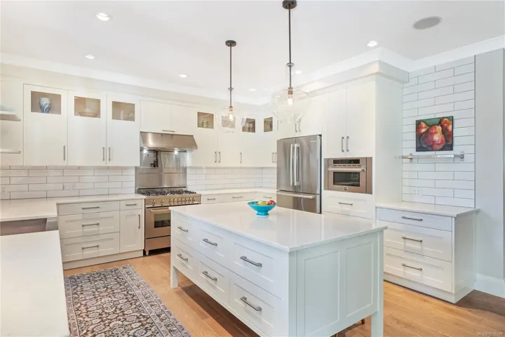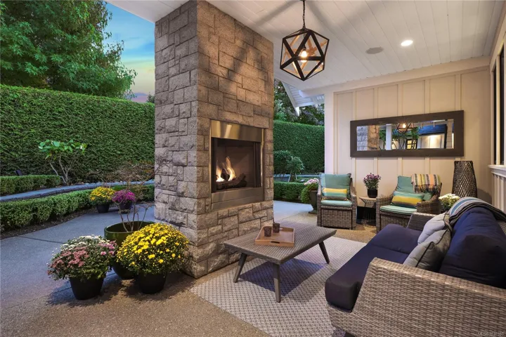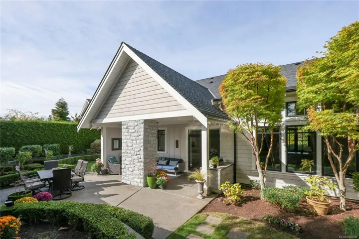 Exquisitely crafted and perfectly positioned within the prestigious Bluffs enclave, this elegant residence embodies timeless elegance and modern sophistication. Designed to embrace its rare setting, the home opens seamlessly to a broad, south-facing garden oasis, where stately firs, and graceful maples frame a private sanctuary of natural beauty.