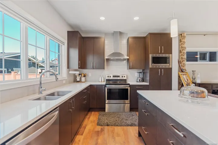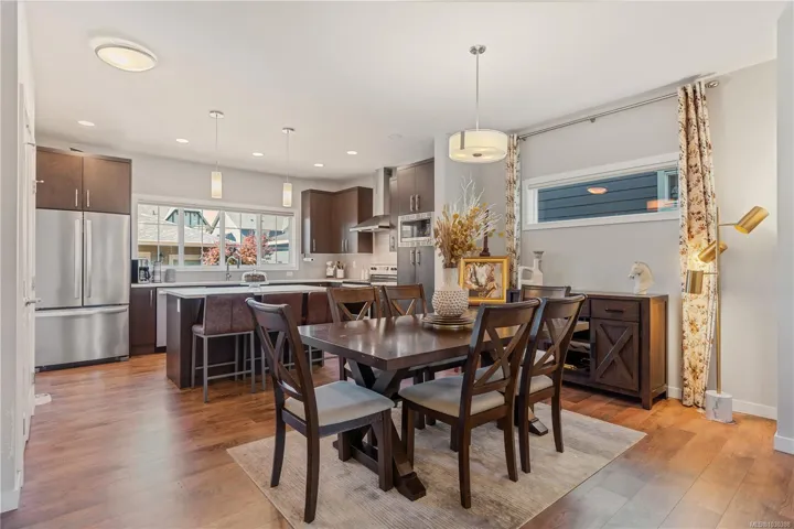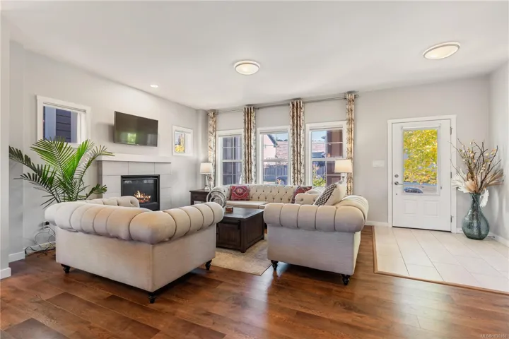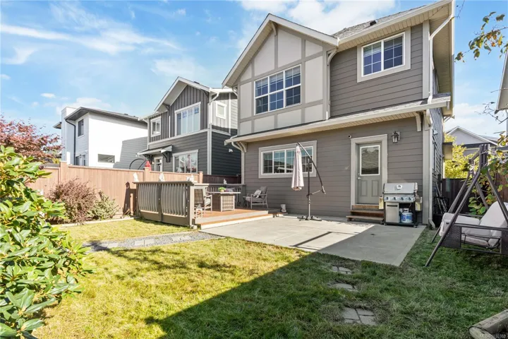 Here is your chance to own & live in Royal Bay! This bright, 2020 green-built 4BR, 4Bth home is on a quiet street, close to the ocean & has many upgrades. Upstairs you’ll find 3BR & 2 full Bths, downstairs is another BR, full bth, storage & fabulous family room! The airy, open-concept main floor has a big beautiful kitchen overlooking backyard, w/abundant cupboard & counter space & eating bar. Detached garage & adnl parking off lane are awesome bonuses plus a cozy natural gas FP, on demand hot water, custom blinds & upgraded HW flooring. Enjoy morning coffee on the charming front porch. Spend afternoons & evenings in the fully fenced, low maintenance, SW exposed backyard w/space to play. You’ll love the beautiful solid wood deck, in ground irrigation, lovely landscaping & lighting. Royal Bay offers awesome playgrounds, walking trails, schools, grocery, pharmacy, post office, coffee & eateries within steps, plus spectacular Royal Bay Beach and Esquimalt Lagoon. Priced right – act quick!