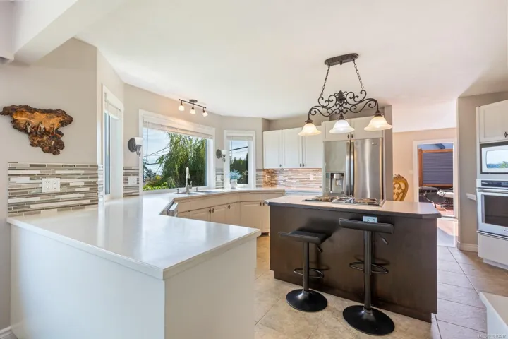 This stunning 3-level home offers breathtaking, uninterrupted views of the Discovery Passage. The custom-built residence exudes quality and craftsmanship. Set on a private 0.25-acre lot, it features 5 spacious bedrooms, 3 bathrooms, and a chef-inspired kitchen with an inviting eating area. The elegant dining room opens onto a large patio, ideal for entertaining or soaking in the ocean vistas. The fenced backyard is a private oasis, while the side yard offers 35 feet of green space next to the neighbour’s home for added privacy. Explore the beautifully landscaped gardens, with serene sitting areas, tranquil ponds, and the gentle flow of marine traffic. This home blends thoughtful design, incredible views, and ample space, creating the perfect family sanctuary. A rare vendor financing opportunity you won’t want to miss.