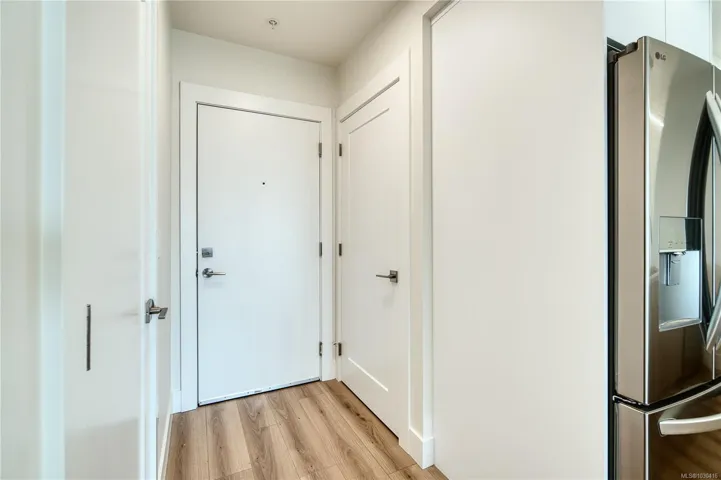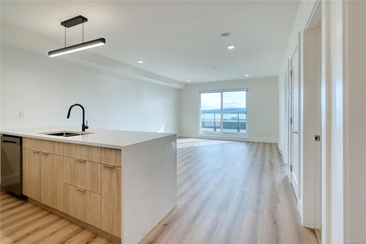 Welcome to Lumina in Harborview District, another principal property community in the heart of downtown Nanaimo, where city living meets coastal charm. Steps from the harbourfront, seawall, cafés, shops, parks, and Hullo Ferries, Lumina places you in the center of a growing, evolving district. Enjoy your mornings on the rooftop patio surrounded by lush greenspace and expansive ocean views. This beautifully designed 2-bedroom, 1-bath home features bright, open living with views of the harbour, city, and mountains — a striking blend of coastal beauty and urban energy. The kitchen stands out with waterfall-edge countertops, sleek cabinetry, and contemporary lighting, all contributing to a clean, modern aesthetic. Whether it’s a stroll along the waterfront, coffee with friends, or a rooftop sunset, this home connects you to the best of downtown — and the exciting future unfolding around it.
