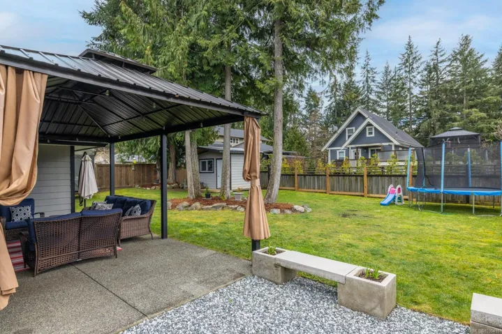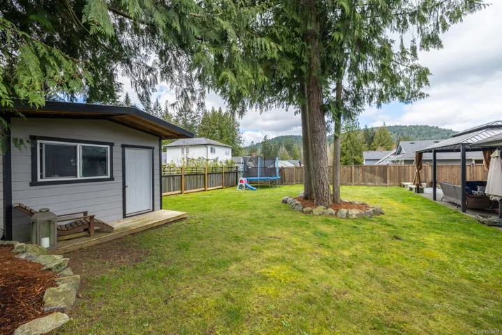 Welcome to this well maintained rancher in the heart of Cobble Hill’s sought after Twin Cedars community. This 3-bed, 2-bath home offers a bright open concept layout with vaulted ceilings, skylights & large windows. The kitchen is designed for everyday living & entertaining, featuring a breakfast bar & flow into the family & dining areas. The primary suite provides a relaxing retreat, while 2 additional bedrooms offer flexibility for family, guests, or a home office. Outside, the sunny south facing yard is level, irrigated & ideal for gardening or enjoying the outdoors. Garden areas create a private setting, while the backyard features a gazebo & storage shed. Additional highlights include oak hardwood flooring, heat pump, natural gas fireplace & BBQ hookup. The double garage is insulated, heated & wired with access to the laundry & mudroom. Located on a quiet crescent steps to shops, cafes, pubs & trails, this move in ready home offers convenient Cobble Hill living.