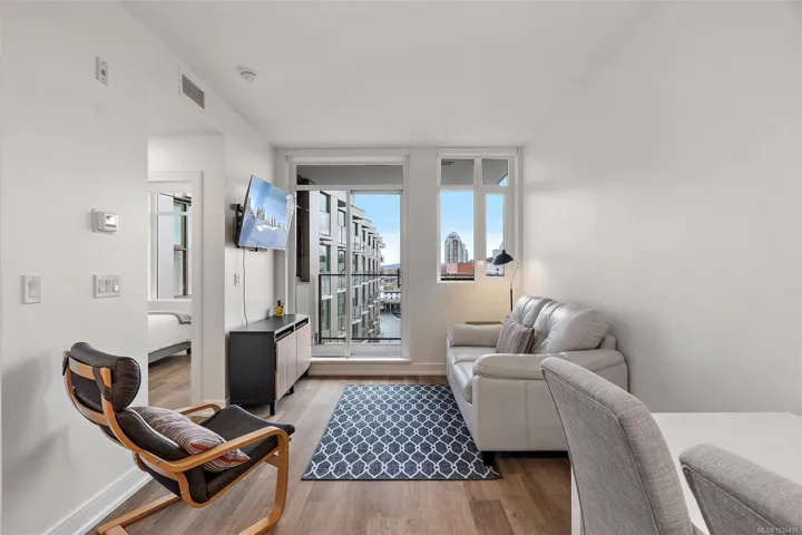 Looking for the best value harbour view condo in Victoria? Priced well below its assessment, offering an exceptional opportunity in a near new home! Welcome to The Pearl, a boutique residence in the heart of Old Town District. This stunning 8th-floor end unit with water views and no unit above, means you have only one neighbour. This bright, contemporary condo features 9ft ceilings, high-end finishes, a chef’s kitchen with quartz counters & stainless steel appliances, plus in-suite laundry and efficient heat pump with A/C. Enjoy sunsets from your spacious patio. Pet-friendly with no size restrictions, secure parking, separate storage, gym & resident lounge. This condo offers tons of desirability in the best downtown location in Victoria. Walk Score of 97 offers steps to dining, shops & waterfront walkways. Can be sold fully furnished— turn key & move-in ready.
