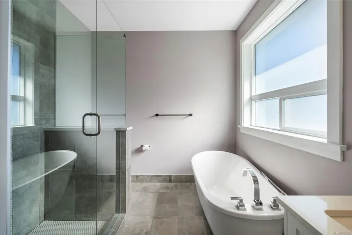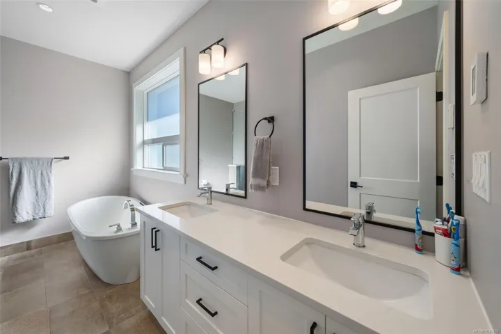 Welcome to 2137 Triangle Trail, a well-maintained home built by respected builder Coda Homes Ltd., featuring a legal self-contained suite. Located on a quiet street in Langford’s sought-after Olympic View neighbourhood, just minutes to Royal Bay and all Westshore amenities. Quality finishes include engineered wood flooring, quartz countertops, gas fireplace, efficient heat pump, hot water on demand, and heated floors. The main level offers open-concept kitchen, living and dining, plus an office/den, laundry, bath, and primary bedroom with ensuite and walk-in closet. Enjoy the large covered patio overlooking a fully fenced backyard backing onto a greenbelt, complete with a gas fire pit and hot tub. The lower level includes two additional bedrooms, full bath, rec room, and a private studio suite—ideal for guests or added income. Don’t miss out on this amazing family home!