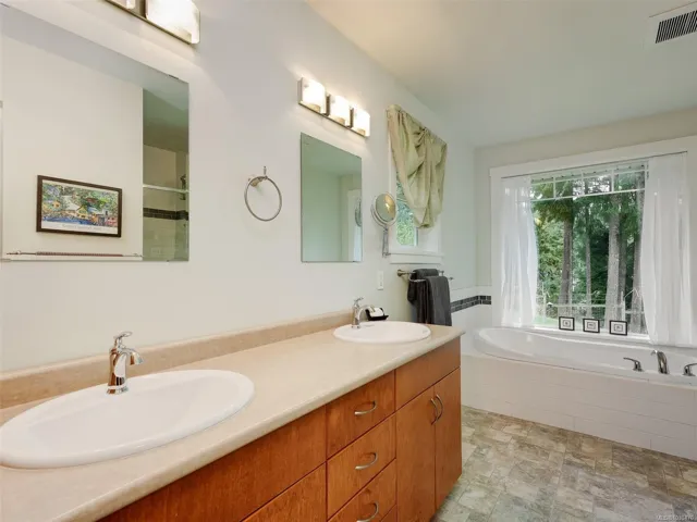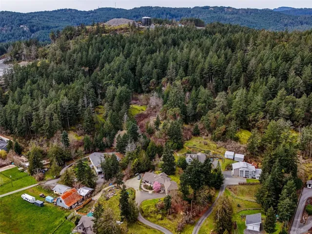 Backing onto parkland, this 2006-built home sits atop a level knoll with blue sky views. The simply magical yard full of fruit trees, veggie, herb & perennial gardens beckons you outdoors to play or relax in its many thoughtful spaces all soaked in afternoon sunshine. Shady spots to read, a greenhouse to nurture, a fire pit to sit around, good living to be had here. The spacious home is bathed in natural light & provides an open living area with a huge wrap around kitchen, cozy living room with fireplace and gracious dining room. A private Primary bedroom on its own level with walk in closet & ensuite, two additional bedrooms, a lower family room and a good-height crawl space with ample storage space. A legal & private 1-Bedroom suite over the double garage completes this stunning home. Brand new shingles & exterior paint, a heat pump, RV parking, steps to the Galloping Goose, bus, minutes to Langford’s schools & amenities. Rural living close to town!