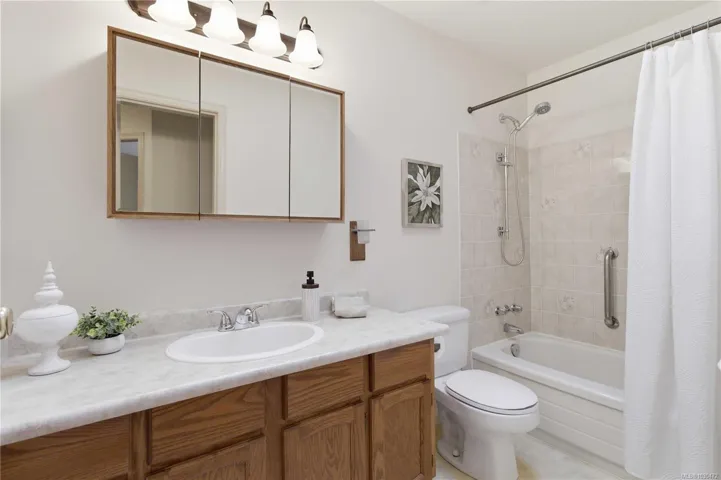 Welcome to this lovingly maintained 3bed 2bath no-step rancher, proudly owned and cared for by one owner. This home offers solid bones and timeless functionality in excellent condition, ready for your personal style. The spacious layout provides to eating areas, 2 living spaces, primary with 3 piece ensuite, dedicated laundry area, and a large rec room created from the converted garage perfect for hobbies, home office or convert back to garage with components still in place. Set in a quiet, safe, and central neighbourhood walking distance to schools, parks, and pathways. Enjoy seamless access to the highway for quick trips downtown or the airport and ferries. The sunny yard offers a quiet patio, room to garden and includes a handy shed for green thumb. Important updates include vinyl windows an HRV system for air ventilation and filtration and lighting throughout. This is an ideal opportunity for first-time buyers or those looking to downsize and age in place with ease.