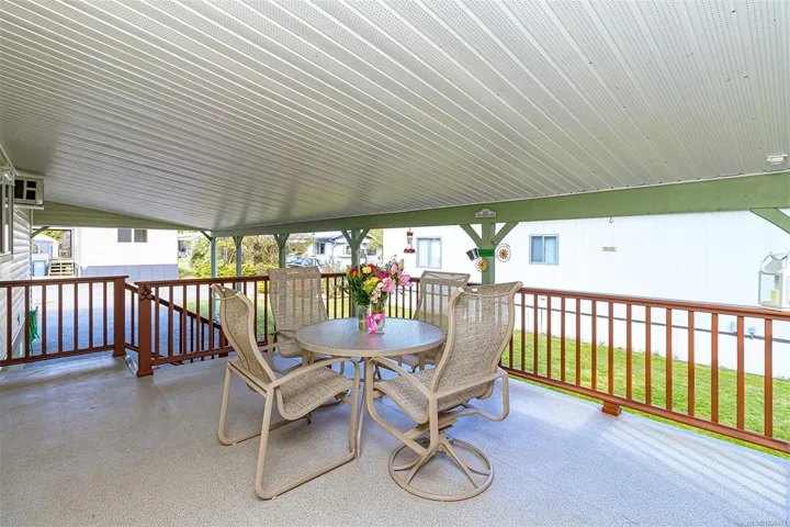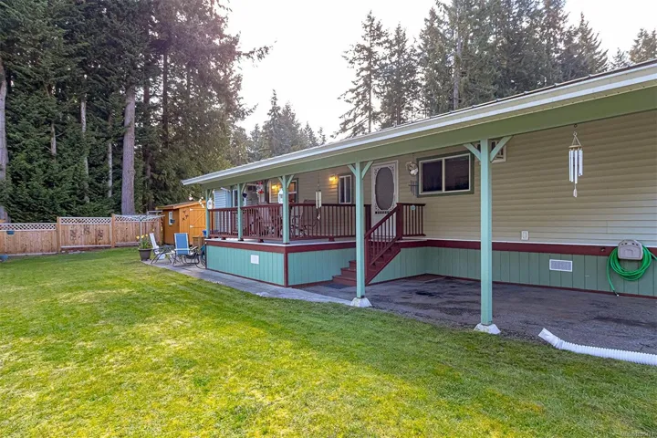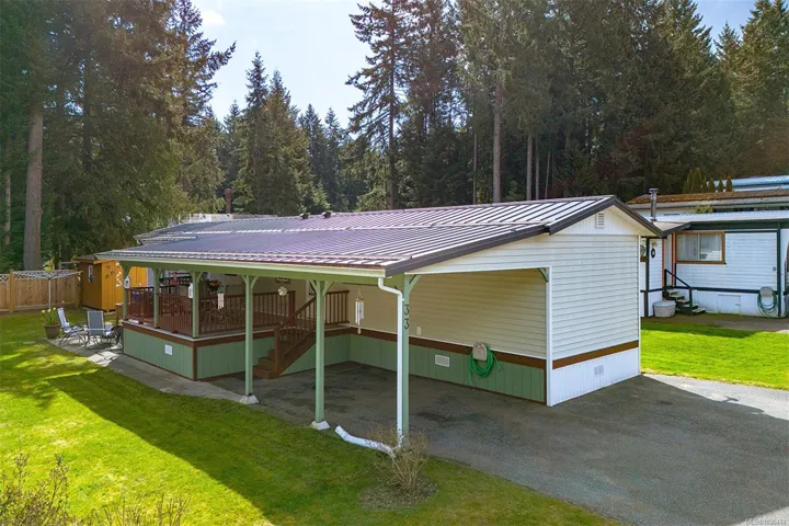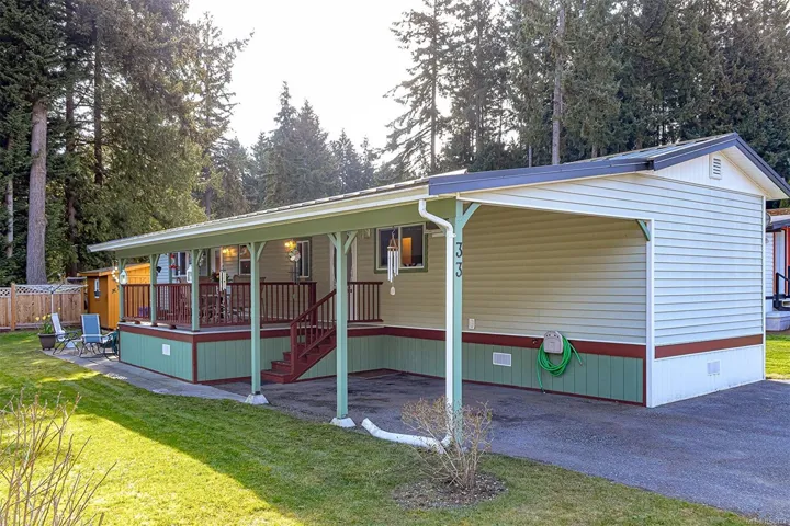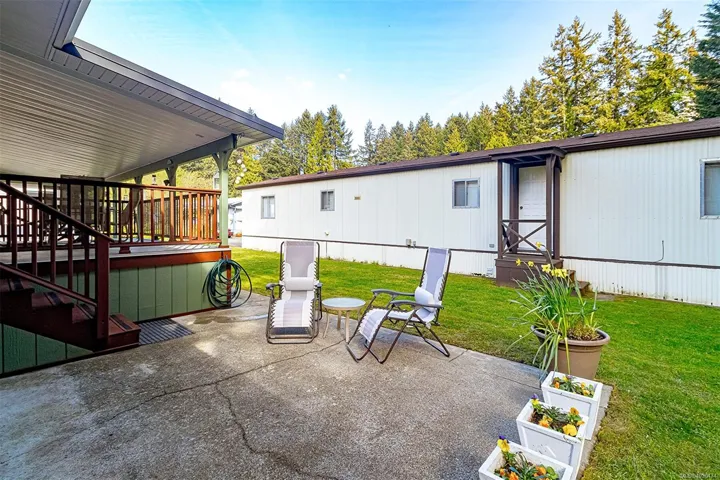 Welcome to Terrace Place- a 50+ 2 bed/ bath home that is move in ready, located in a quiet residential area yet convenient to all amenities. Fully rennovated from top to bottom – this meticulously maintained home has so much to offer. Vinyl widows all replaced in 2024. All kitchen appliances & cabinets replaced in 2024. Bathrooms rennovasted 2 years ago. New vinyl plank flooring throughout.Brand new water heater. Two a/c units. A bright & sunny home with a fresh & modern look! Highlight of home is the large covered deck, perfect for entertaining & enjoying the outdoors. Large patio area & grassy area with brand new cedar fencing along the back! Metal roof replaced in 2019. Heaps of storage in the crawl space which is partially carpeted & spray foam insulaton in 2018. Parking in carport for 2 vehicles plus driveway parking. Beautiful cedar workshop in back with power & extra freezer. Patio funriture included. Pet friendly and easy access to Vcitoria, Langford or Duncan.
