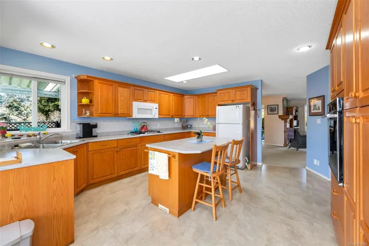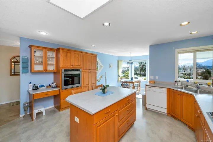 Located in one of Duncan’s most desirable neighbourhoods across from a park, this one-owner 1,832 sqft 3 bed, 2 bath rancher offers exceptional versatility. The home features a double garage plus a detached, wired, 480 sqft shop with a sink & toilet, offering great potential (buyer to verify) as R-3 zoning allows for a secondary suite. Designed with accessibility in mind, the house was designed with wider hallways & spacious rooms. The bright kitchen has a nook, island, newer gas cooktop & wall oven, & opens to a lovely, covered front patio with gas hookup. A separate dining room & sitting area leads to a large, partially covered back patio & beautifully landscaped backyard. The living room features a gas fireplace & views of that yard! The primary bedroom features a walk-in closet, 4-piece ensuite, & also has backyard access (hot tub wiring in place). Two additional bedrooms are generous & one has a Murphy bed. In a quiet, friendly location just minutes to amenities!