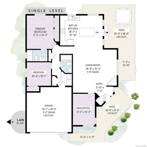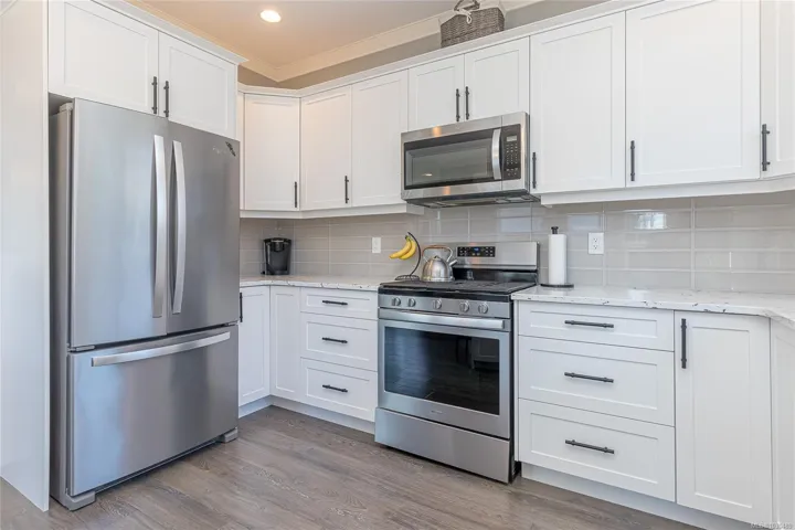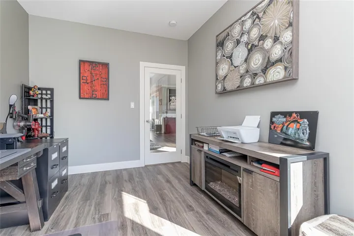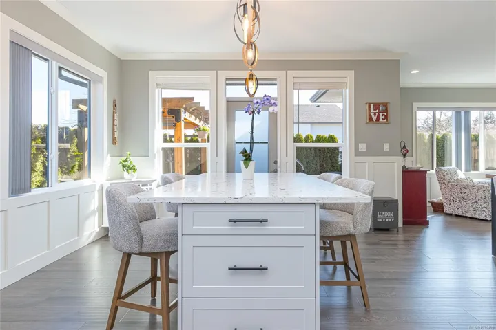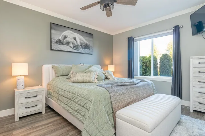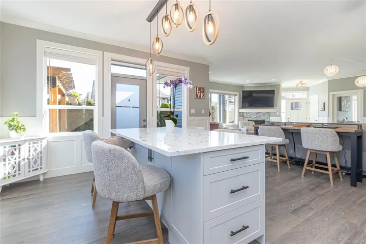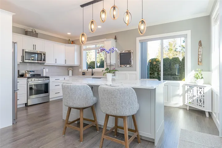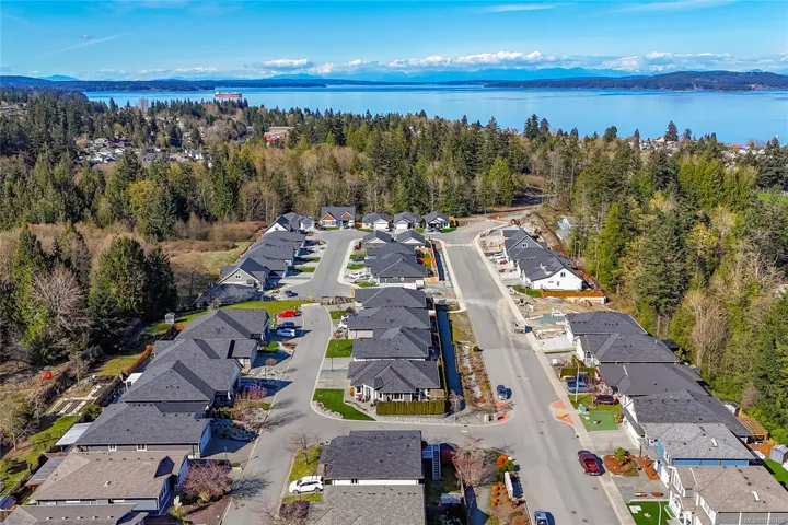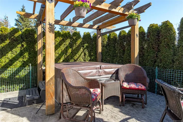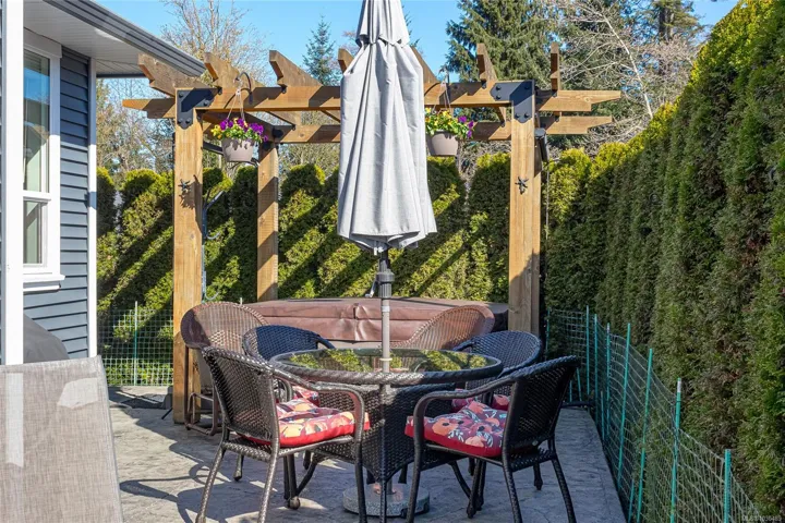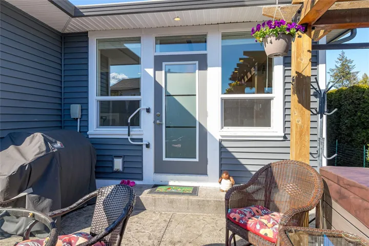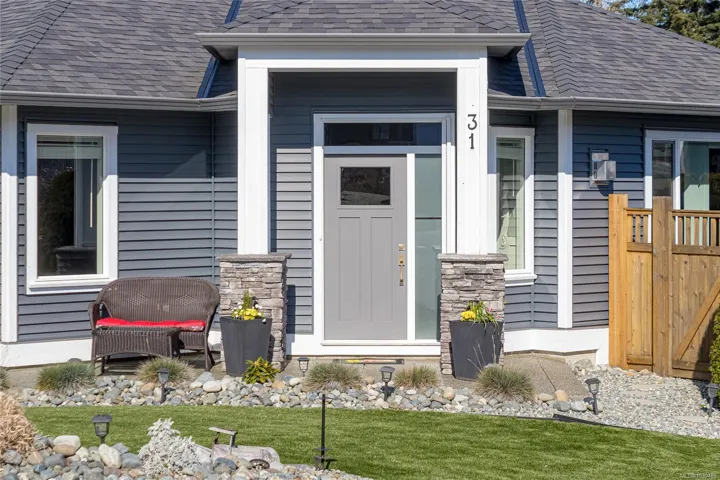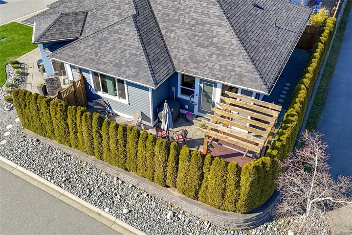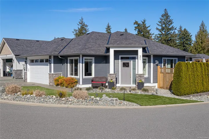 Welcome to Askew Creek Drive, just minutes from the adorable seaside town center of Chemainus on central Vancouver Island. Discover effortless island living in this better-than-new, upgraded 2 bed + den, 2 bath low-maintenance rancher. Thoughtfully designed for an easy lock-and-leave lifestyle, this 2018-built home offers over 1,400 sq ft of accessible single-level living with a bright open-concept plan, cozy gas fireplace, central A/C, and double attached garage. Enjoy a private yard with natural gas BBQ hook-up, stamped concrete patio, hot tub, and cedar pergola. Upgrades include quartz counters throughout, a huge custom eat-at island with built-in storage, luxury vinyl plank flooring (no carpets), upgraded lighting, and a fully finished garage. Located in a quiet well-run strata with low $143/month fees (incl. management, garbage/recycle, and water!), it’s an excellent option for off-island buyers or locals seeking a worry-free Vancouver Island home.