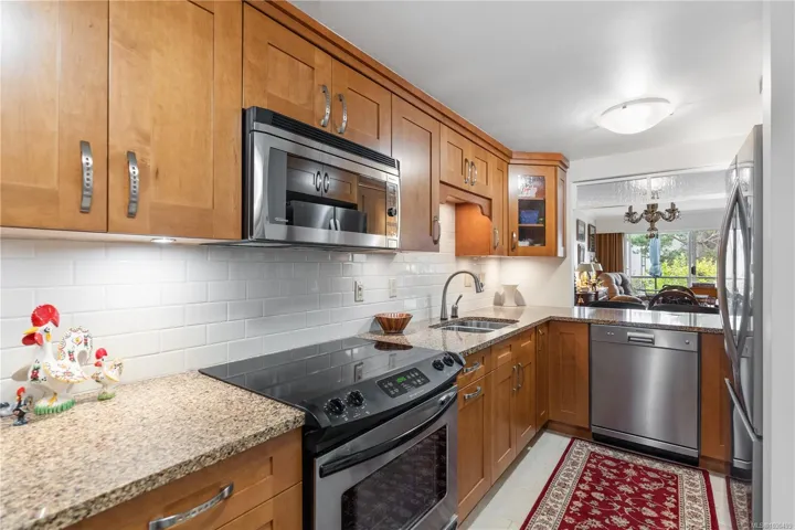 Welcome to Sandpebble at Resthaven by the Sea. Unit 118 within this sought after complex offers a beautifully renovated & bright move-in ready condo. Very spacious and functional layout. Updated kitchen with custom cabinetry that provides ample pull-out drawers & storage, a built-in desk, dimmed lighting, subway tile backsplash & quartz countertops. Updated ensuite with walk-in shower. Custom blinds (motorized) & drapery. Spacious balcony with south-east exposure. Professionally managed strata offering many amenities including an indoor pool & hot tub, gym, activity room, common lounge, library and workshop. Other features include manicured & pristine gardens, underground parking and separate storage locker. Just steps away from Resthaven Park, marinas, tennis courts & waterfront walkways. Also conveniently located close to downtown Sidney, the airport & BC Ferries terminal. Resort lifestyle with an updated condo combine to offer incredible value. Don’t delay on this rare opportunity!