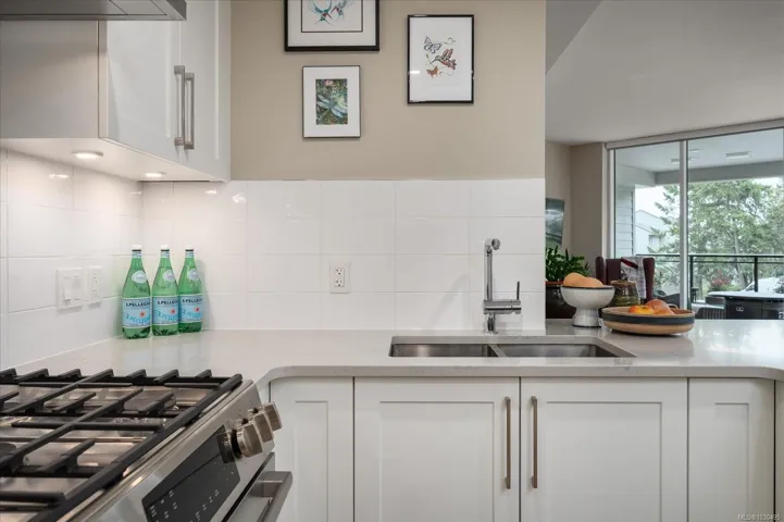 Largest floor plan at The Westerly! Oceanview is at its best with this modern spacious open-concept condo with 2 bedrooms, one den & 3 bathrooms in Nanoose Bay. Fabulous modern kitchen with a walk-in pantry, garburator, stainless steel hood fan & high-end S/S appliances including a gas stove. A large living room with a gas fireplace. The sleek modern great room has floor-to-ceiling windows that open to let in loads of natural light & provide access to the oversized covered patio. The primary suite has floor-to-ceiling windows with a view of the ocean, a walk-in closet & luxurious bathroom with a walk-in shower, two sinks & a separate water closet. Second bedroom is spacious with a closet & an ensuite. There is also a den. Laundry room has plenty of storage. All closets have been outfitted with custom organizers. Versatile blackout/shear window coverings. Secured underground parking. Amazing amenities include the Schooner Cover Marina, Nanoose Bay Cafe, Fairwinds Golf & Wellness Club.