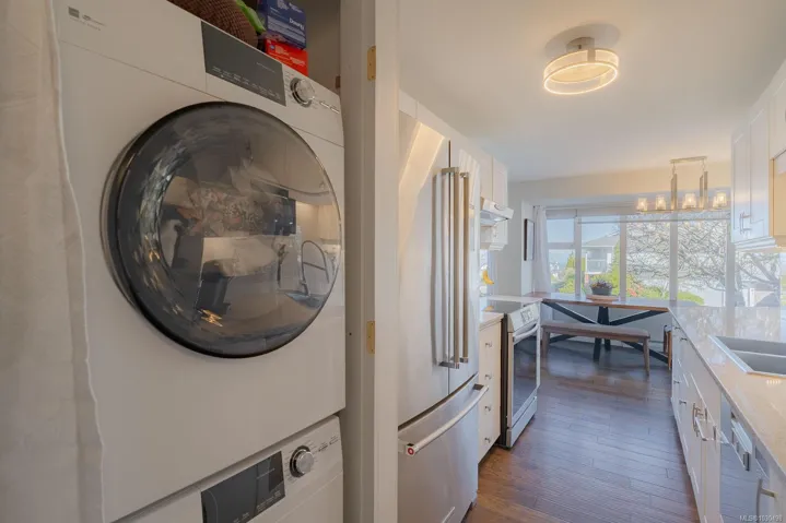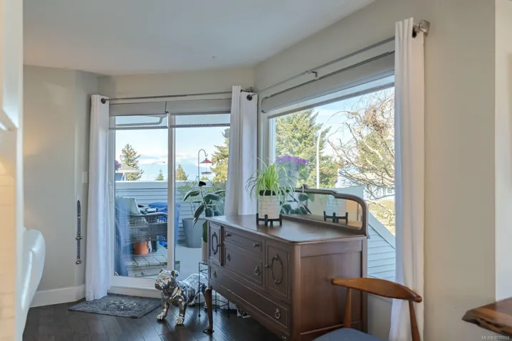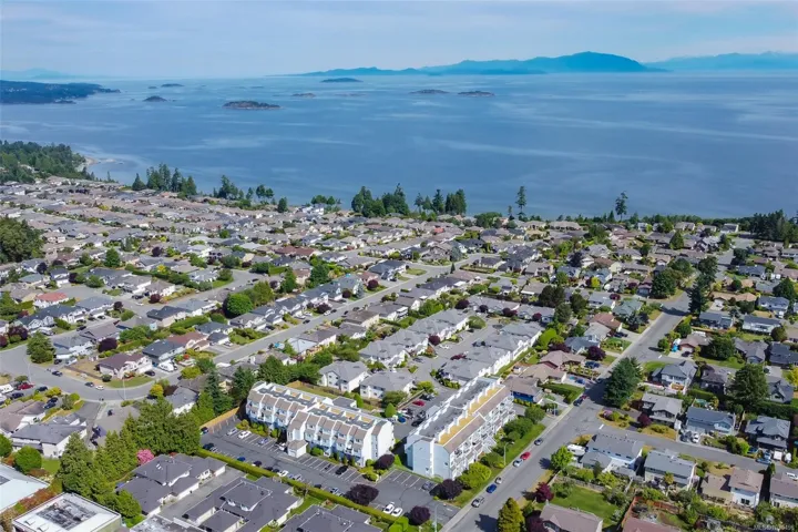 Accessible condo in desirable North Nanaimo with ocean views and stunning renovations. Walk to the beach, shopping, and everyday amenities from this pet-friendly, well-cared-for strata. Main-level entry offers 943 sqft of easy, stair-free living with a functional layout. Fully renovated with engineered hardwood, updated lighting, and fresh modern paint throughout. Bedrooms on opposite sides provide privacy, with large windows for abundant natural light. Enjoy a covered patio with ocean views and stair access to the gardens and yard. The updated kitchen features granite counters, custom cabinetry, and quality appliances. Spa-inspired bathroom with walk-in shower and elegant finishes. Amenities include a shared rooftop deck with panoramic views, clubhouse with sauna, gym, billiards and meeting room, plus landscaped grounds and a welcoming community feel—A rare opportunity for accessible, coastal living in a prime location.