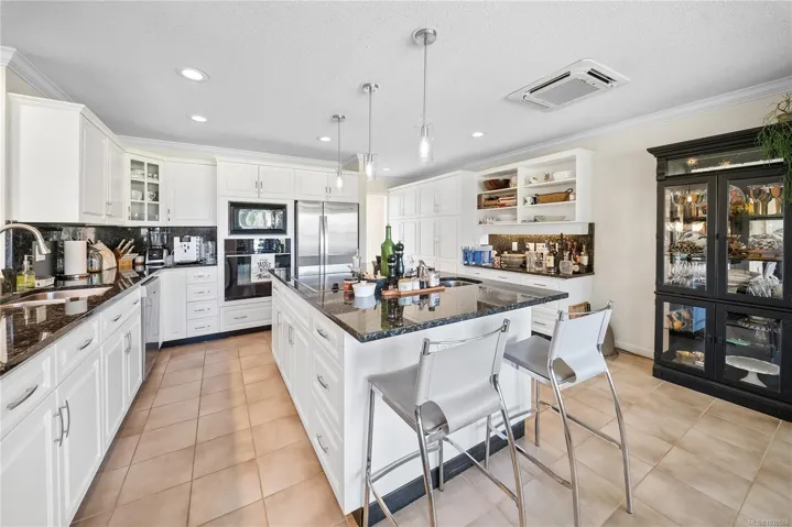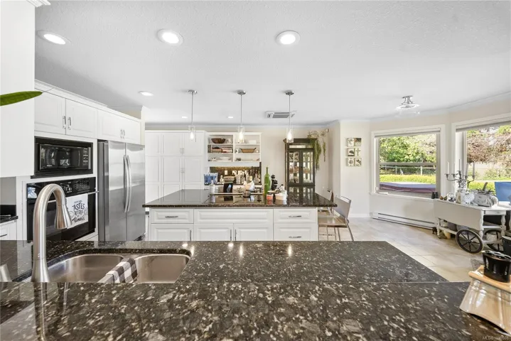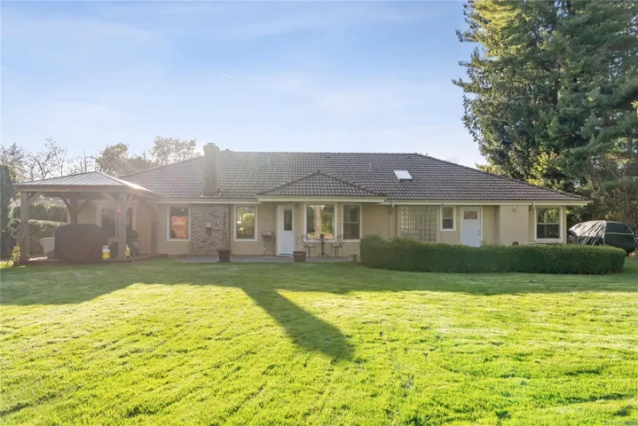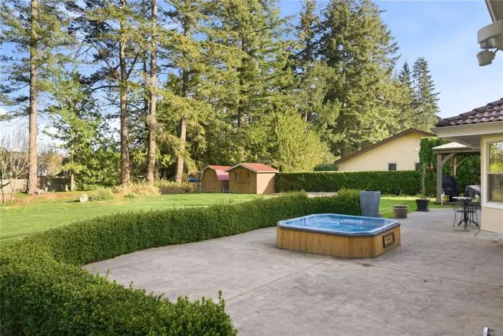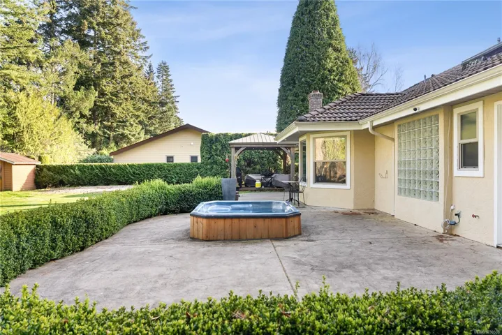 Private Parksville Paradise near Beach! Updated 2,636 sqft + double garage, 3 or 4 Bed / 2 Bath Executive Rancher on a private, fully fenced .57-acre lot. Manicured front/back yards, large patios, full-width rear deck, in-ground hot tub, RV/boat parking, security gate & 2-car garage. Bright interior w/ skylights & large windows. Living/Dining features hardwood floors, recessed ceiling, crown moulding, wood-burning + gas stove. Updated kitchen w/ granite counters, large island w/ prep sink, lots of storage, pantry & eating nook opening to outdoor living. Spacious Primary Suite w/ gas fireplace, walk-in closet & 5-pc ensuite w/ jacuzzi tub. Den/library or 4th bedroom. Laundry/mudroom, updated windows & tile roof. West-facing patio, private yard. Between Parksville & Qualicum Beach, walk to beach, minutes to marina, golf & parks. Dev potential, to buyer verify. (All information, data and measurments to be verified by the purchaser if important).