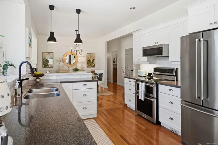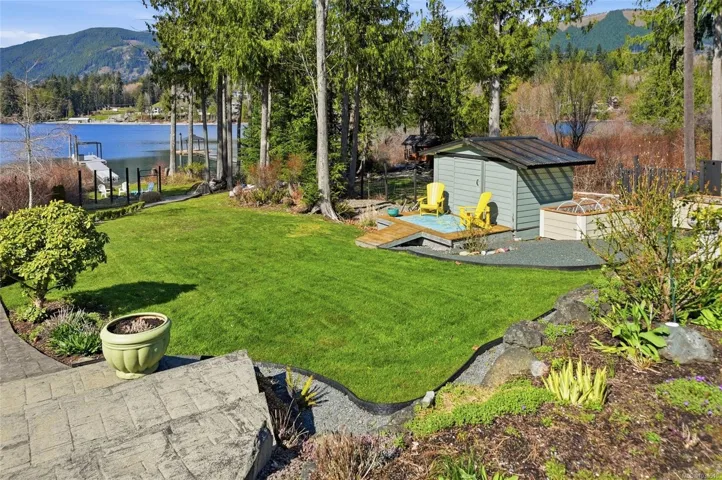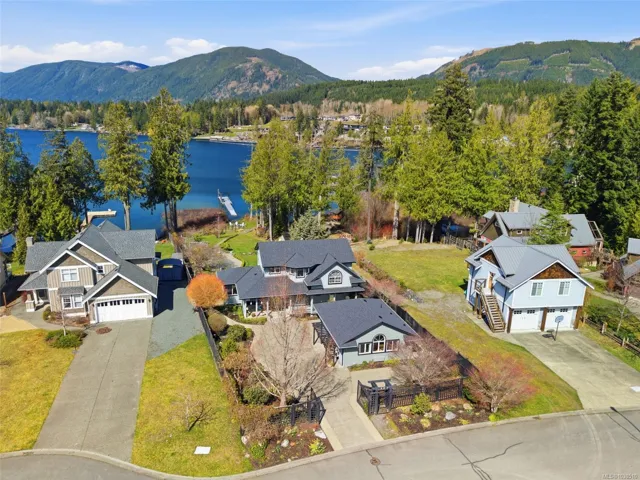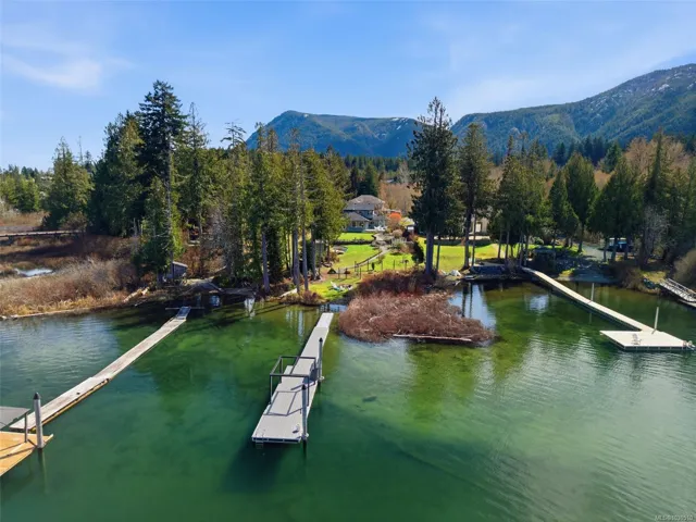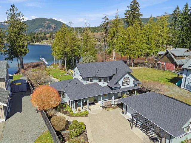 Exceptional lakefront property in Point Ideal on Cowichan Lake. This rare 0.70 acre walk-on waterfront lot offers over 100 ft of pristine shoreline, private beach, & a 5-year-old dock, perfect for enjoying 34 km’s of lake. The 3,550 sq ft home features open-concept living with 9 ft ceilings, hardwood floors, gas fireplace, and an updated kitchen with newer KitchenAid appliances including double oven & induction range, w/ gas hook-up available. The main floor primary suite and all bedrooms enjoy stunning lake views, with French doors opening to over 1200 sq ft of deck space. Approx. 2,540 sq ft finished plus a 1,012 sq ft unfinished basement with great potential. In addition to a fully self-contained 372 sq ft cottage ideal for guests or a rental. Brand new roof & Heat pump, landscaped & fenced yard with irrigation, a detached garage. Municipal water & sewer. Short walk to town. A rare lakefront offering. (All info/date to be verified if fundamental to the purchase. Buyer to verify)