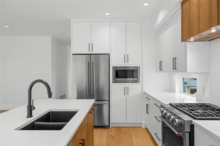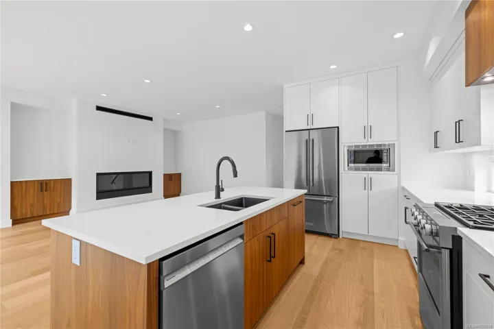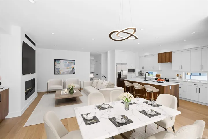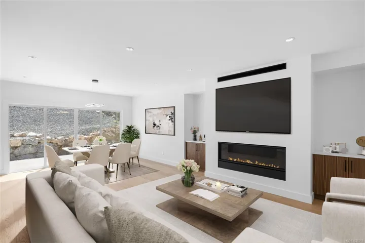Welcome to your turn key zero maintenance dream home in the heart of Cottle Creek Estates. 400+ acre Linley Valley Park is your backyard! This stunning brand new residence offers 3 spacious bedrooms plus a versatile den, combining modern design with timeless finishes throughout. The chef-inspired kitchen is a true centerpiece, featuring premium appliances, custom cabinetry, and quartz countertops, all flowing seamlessly into the bright open concept living space. The living room is anchored by a striking 60-inch fireplace framed with rich oak cabinetry, creating a warm and inviting atmosphere. Retreat to the luxurious primary suite complete with a spa style ensuite showcasing floor-to-ceiling tile, rainfall shower, freestanding tub, dual vanity, and hot water on demand. Thoughtful upgrades include engineered hardwood flooring, and EV charger rough-in. Outdoors, enjoy both a welcoming front deck and a private rear patio ideal for entertaining, with BBQ hookup, hot tub-ready power.