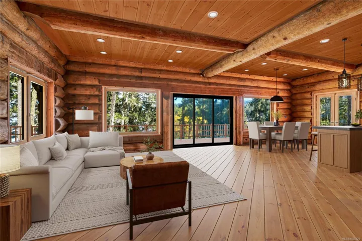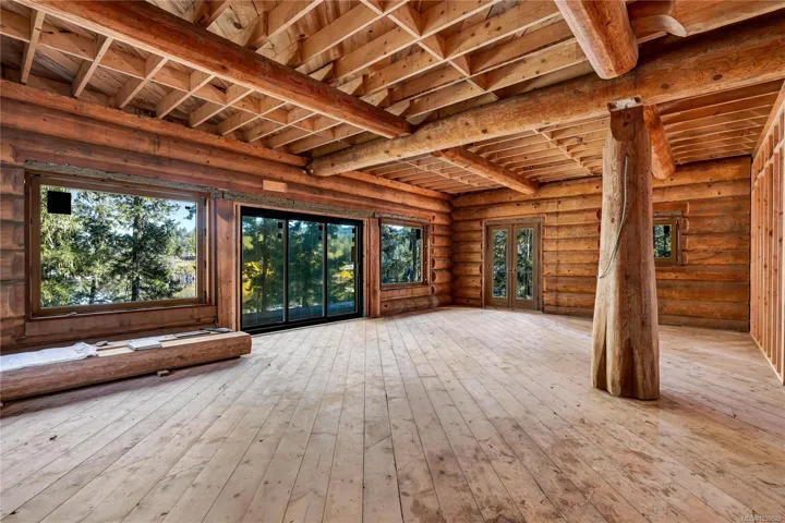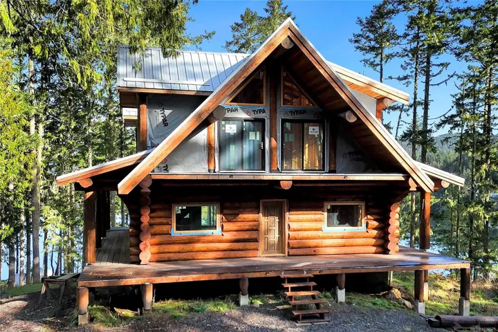 Set on a private, park-like 5-acre oceanfront at the end of Sooke Basin, this extraordinary West Coast Vancouver Island offering captures the essence of coastal living. A rare walk-on beach invites swimming, kayaking, and sunset evenings in complete serenity. The handcrafted 2,100 sq ft custom log home—framed and built to lock-up—features soaring 16’ vaulted ceilings, expansive wood windows with panoramic ocean views, and a wraparound deck with upper balconies. Designed for 4–5 bedrooms and 3 baths, it’s ready for you to finish to your vision under new home warranty. The property also includes shared ownership of 60+ acres of preserved forest with a stream and pond, plus a 1/7 interest in a separate 10-acre parcel. A truly private legacy property just minutes from Sooke and within easy reach of Victoria.