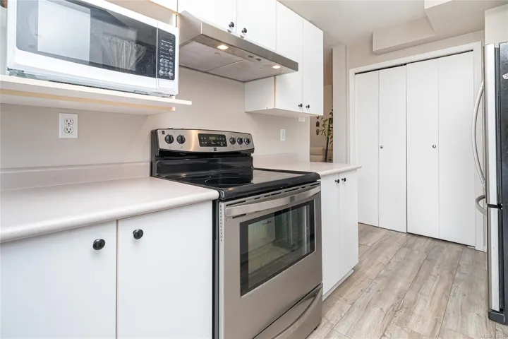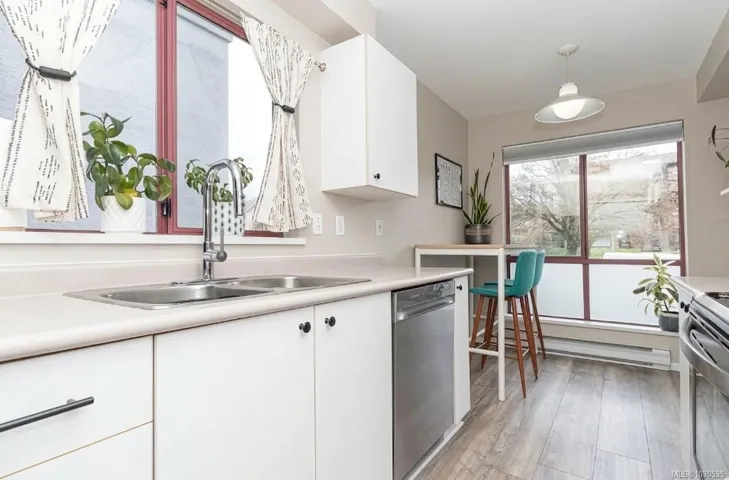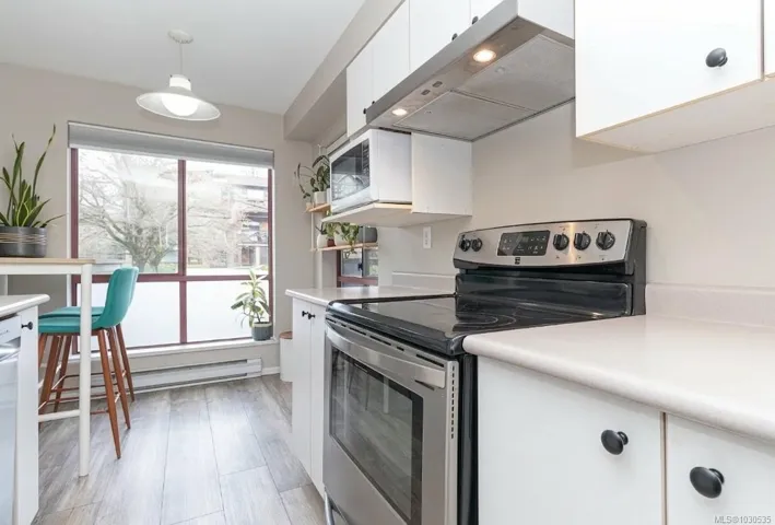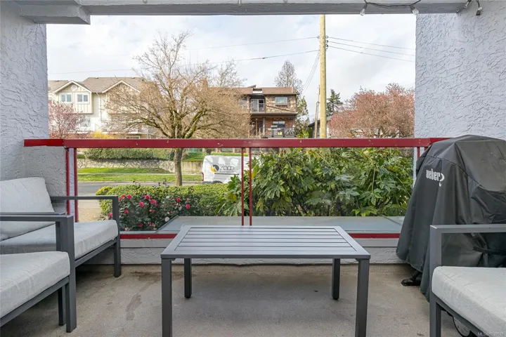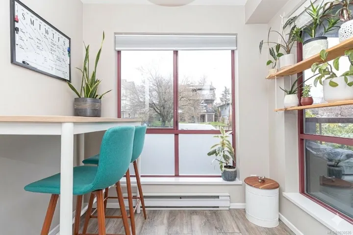 Move-in ready 2-bedroom condo offers comfort, style & exceptional value! The bright living space features large windows, a cozy gas fireplace & access to a private balcony. Newer flooring adds a modern touch. The functional kitchen includes stainless steel appliances, ample cupboard space & a charming eat-in breakfast nook surrounded by windows. The spacious primary bedroom offers two closets, including a walk-in, along with convenient bathroom access through a pocket door. The second bedroom offers flexibility & would also make a great office or den. Highlights include in-suite laundry, a storage locker, bike storage & secure underground parking. The well-managed strata boasts a contingency fund of over $3.4M! Set on a quiet, tree-lined no-through street just minutes from the Gorge Waterway, Galloping Goose Trail, and Mayfair Mall. With easy access to transit and a central location, it’s an ideal option for students, commuters or walk to work!