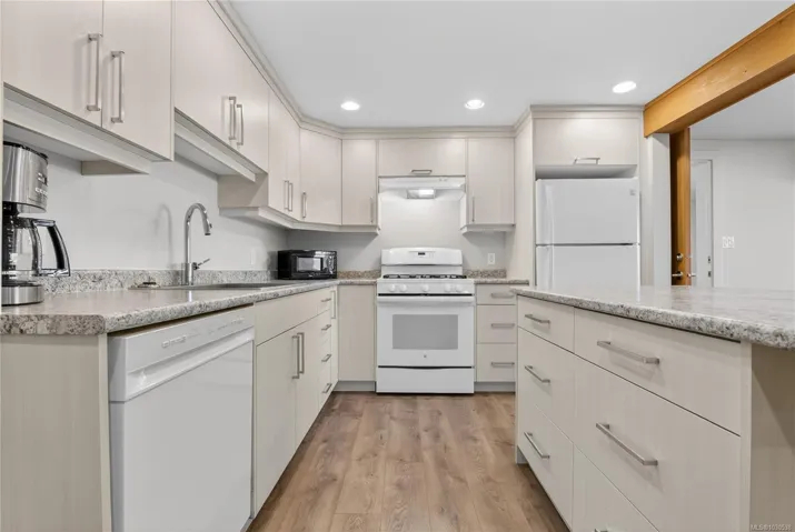 Set on a picturesque ½-acre lot with sunset & lake views this fully renovated home is ready for a chapter. Offering a flexible floor plan with main floor living and a “walk out lower level” fully finished with a separate in-law suite. The bright main level features a cozy living area with gas fireplace, a custom kitchen and (3) well-appointed bedrooms all boasting space saving custom cabinetry. The lower level has also made use of all available storage, has access to the covered patio and a laundry room with a dog wash! This level also has a finished (2) bedroom in law suite, with roughed in for a double sided Gas FP. The landscape outside is fully fenced offers mature trees, perennials, fruit trees and garden beds. A large driveway ensures ample parking for vehicles, RVs and recreational equipment. Attached to home is an enclosed flexible space for parking toys, motorcycles or create a workshop! Mere minutes from Maple Bay eateries and convenient to Duncan for your shopping needs!
