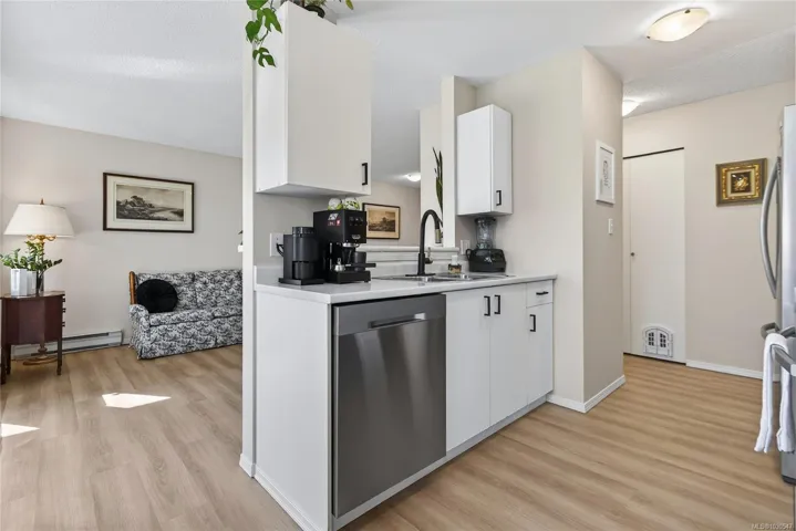 Conveniently located on the quiet side of the building, this well-maintained (Poly B plumbing replaced) 1 bedroom home in Aspen Court Comox offers comfort, convenience, and excellent value. The bright and inviting interior features tasteful updates, newer appliances, flooring and the added benefit of in-suite laundry. The spacious primary bedroom includes a walk-in closet, while the laundry area provides additional storage. Step outside to enjoy your patio with hedge for added privacy. This well-run strata is ideally situated within walking distance to schools, pharmacy, and Quality Foods, with easy access to the airport, beaches, golf courses, hospital, North Island College, and CFB Comox. Rentals are permitted and one pet under 20 lbs is allowed. A fantastic opportunity for first-time buyers, downsizers, or investors. Ground-floor access makes daily living and walks with Fido easy and convenient. Additional parking may also be available.