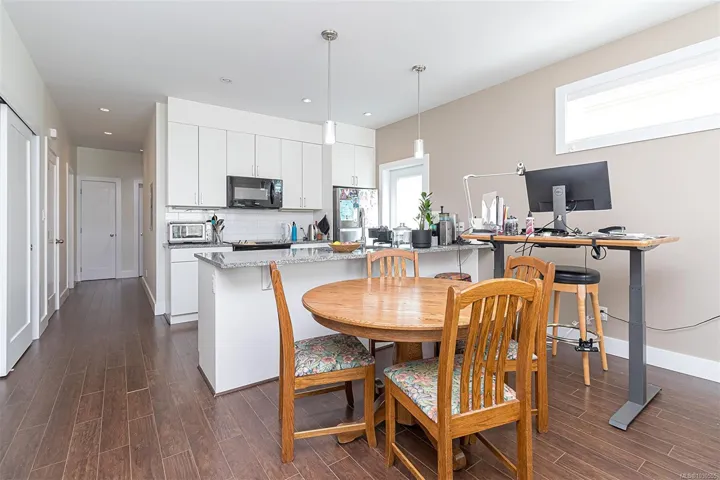 Neat as a pin! This up & down duplex has it all. 2 beds 2 baths down with modern kitchen, in-suite laundry and sunny private patio. Enter through private entrance to upstairs where you will find a bright and sunny 1 bed 1 bath with vaulted ceiling, in-suite laundry, bonus office space and south facing deck. The flexible floorplan allows for many opportunities, live in one, rent the other or multi-generational living, each with their own private space. Added bonus, its already framed for private elevator! Easy 5 minute stroll to parks, the beach, Beacon Ave and all Sidney has to offer.