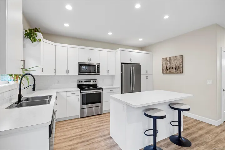 Welcome to this 3 bedroom, 2.5 bathroom home located on a quiet cul-de-sac in a family friendly South Nanaimo neighbourhood. Built in 2018 by Windley Contracting, this thoughtfully designed home offers convenient main level living with an open concept kitchen, dining, and living area, while all bedrooms are located upstairs. Modern finishes throughout create a clean, contemporary feel, and air conditioning has been added for year round comfort. The strata provides low maintenance living by taking care of the yard and exterior. A double garage offers excellent parking and storage. Pets are welcome: 2 cats or 2 dogs, or 1 cat and 1 dog, with no size restrictions. Enjoy being within walking distance to Colliery Dam Park and Harewood Centennial Park, and just a short drive to Quality Foods and other nearby amenities. Data and measurements are approx. verify if import.